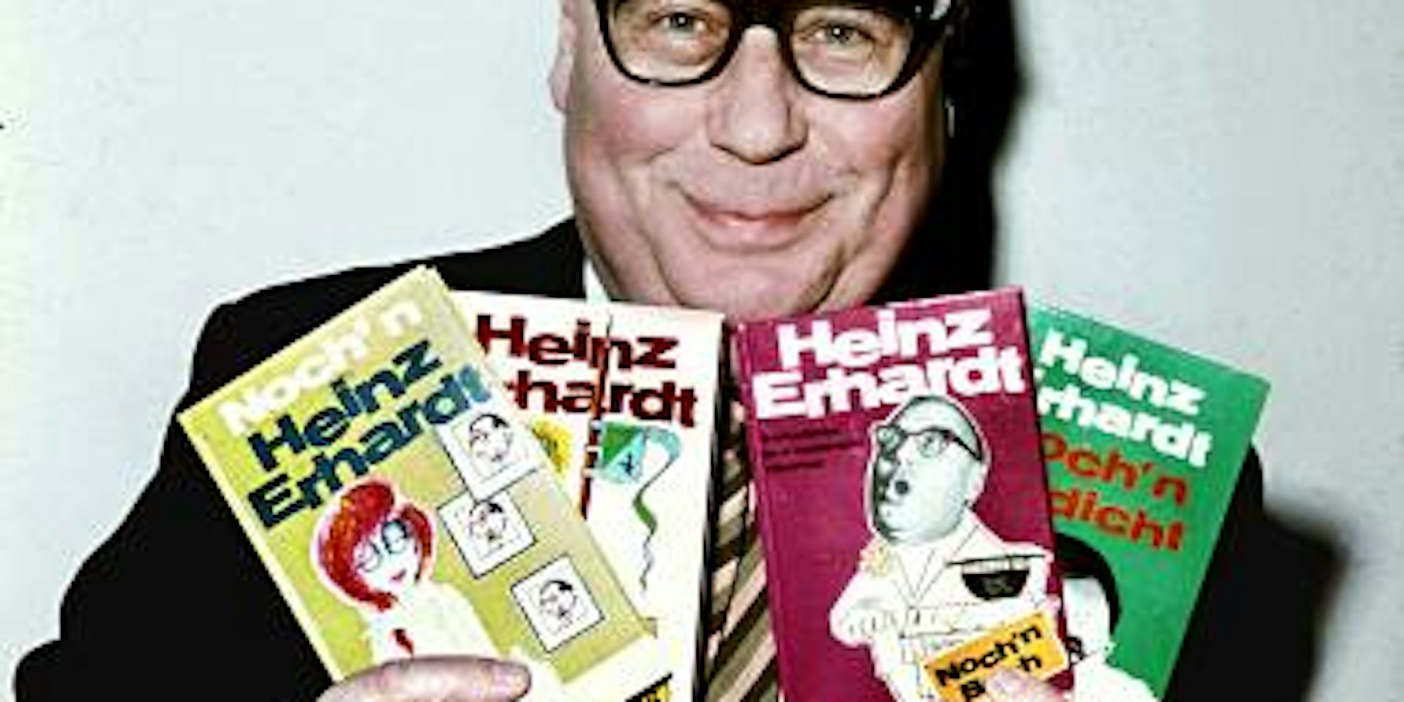1946, nachdem er im Krieg bei der Marine im Musikkorps gespielt hatte, begann er beim Hamburger Radiosender NWDR als Moderator zu arbeiten. Elf Jahre später debütierte er mit dem Film „Der müde Theodor“ im Kino. Auf der Leinwand wurde Erhardt zum Star. Egal, ob seine Rolle Willi Winzig, Willi Kuckuck, Willi Hirsekorn, Eberhard Dobermann oder Fritz Eilers hieß: Er war immer Heinz Erhardt, der nette, aber etwas verwirrte Familienvater, der gerne Unsinn erzählt. Der typische Deutsche aus der Zeit des Wirtschaftswunders. Sein Beruf mache ihn so glücklich, dass er eine Allee von Purzelbäumen schlagen könnte, sagte Erhardt einmal