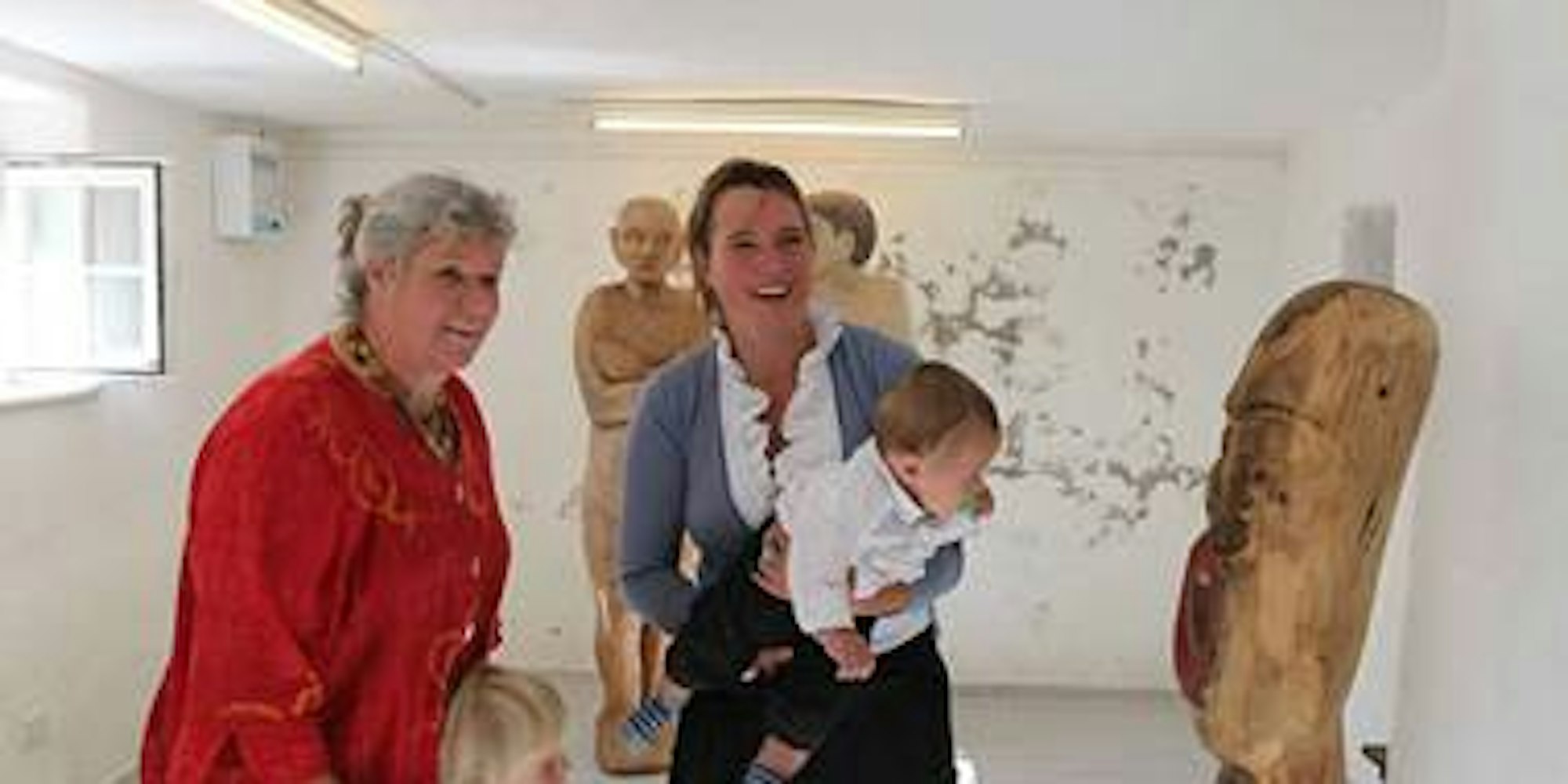 Gesichter einer Ausstellung: Künstlerin Almut Ruepp betrachtet mit ihrer Mutter und ihren Kindern die Werke Wolfgang Metzlers. (Bild: Hilgers)