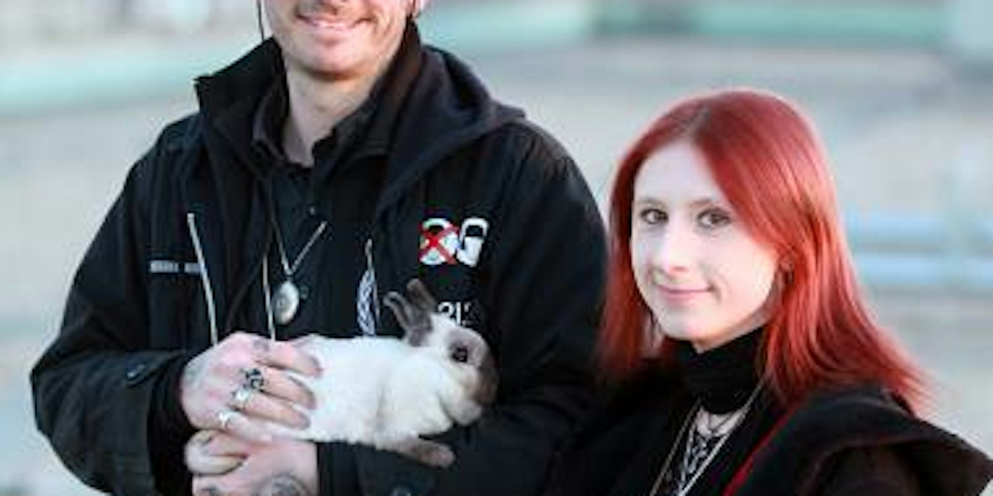 Kriminalbiologe Mark Benecke, seine Frau, die Psychologin Lydia Benecke und Hase Hermine. (Bild: Max Grönert)