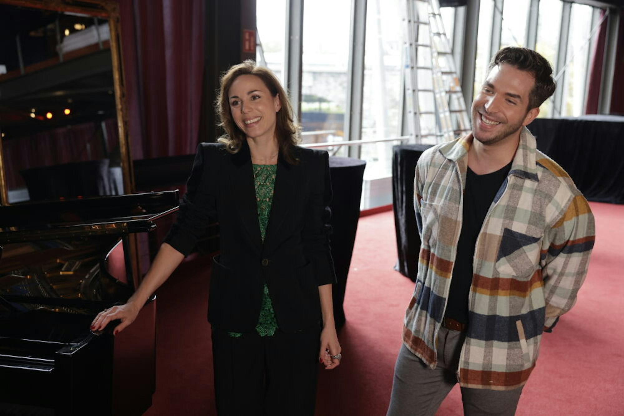 Mit ihrem „Christian“, Riccardo Greco, stimmt auch nach der anstrengenden zweimonatigen Probenzeit die Chemie noch. „Wir haben eine Leichtigkeit miteinander, können offen miteinandersprechen, uns in die Augen schauen und wissen, wie es dem anderen geht“, erzählt Sophie Berner. Auch musikalisch harmonieren die beiden bestens. Als sie bei der Präsentation zusammen „Your song“ singen, verschmelzen ihre Stimmen auf betörende Weise.