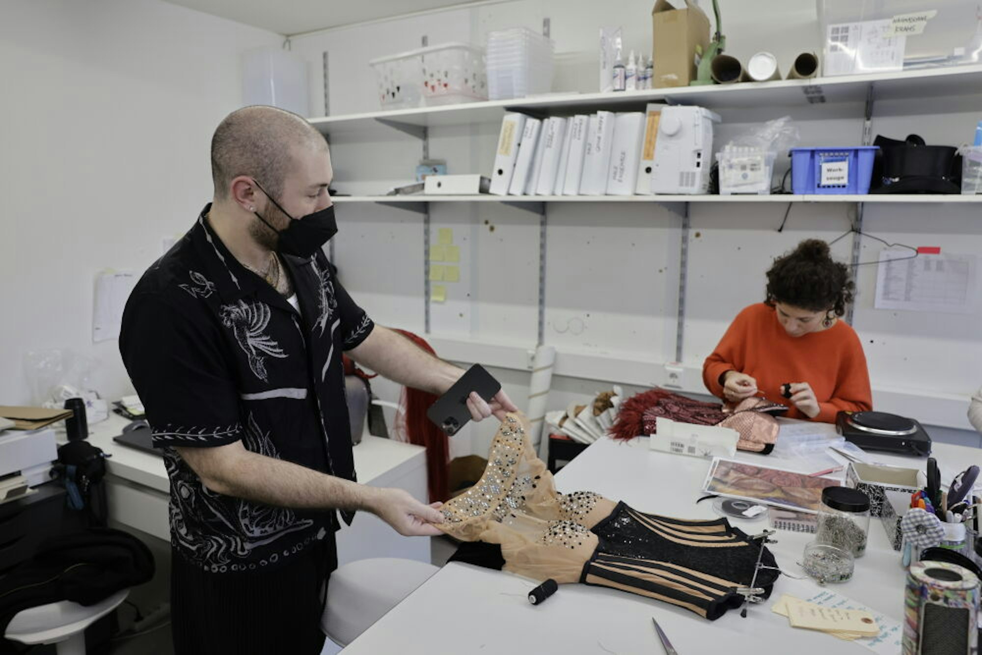 Während die Proben des Ensembles im August begannen, ging es mit dem Umbau schon im Mai los. „Es ist kein Stein auf dem anderen geblieben!“ bringt Klokow die Baumaßnahmen auf den Punkt. Auch wenn ein paar Tage, bevor sich die Saaltüren für die Zuschauer öffnen, überall noch Handwerker und Techniker wuseln und im Backstagebereich noch Perücken geknüpft oder Pailletten geklebt werden, ist man im Zeitplan. „Und das obwohl wir zum Beispiel Lieferengpässe hatten: Da standen zum Beispiel LKW zwei Tage in Amsterdam, weil die Schiffen mit Containern noch nicht angekommen waren.“