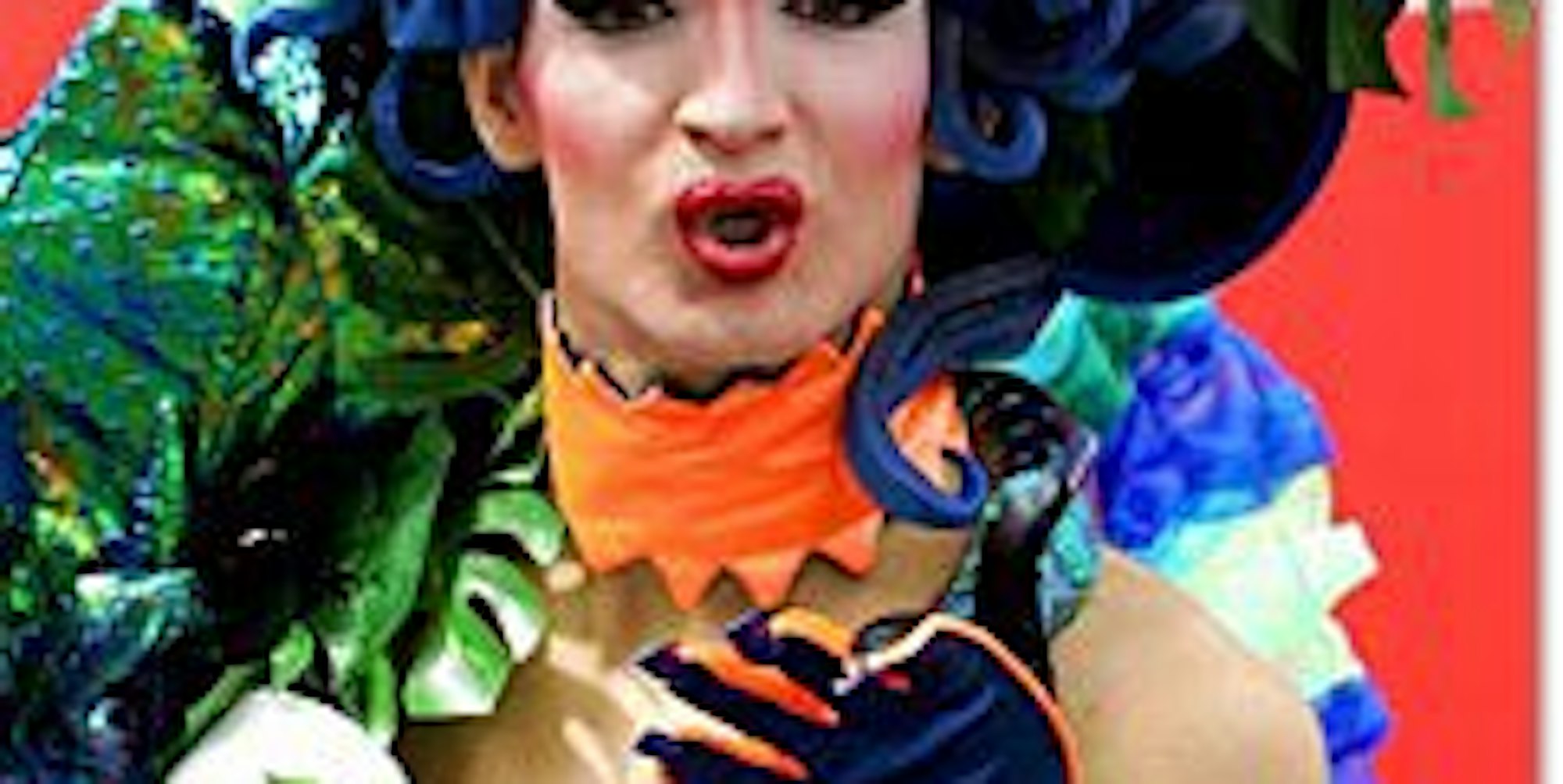 Travestiekünstler Tatjana Taft macht beim Christopher Street Day (CSD) in Köln einen Kussmund.