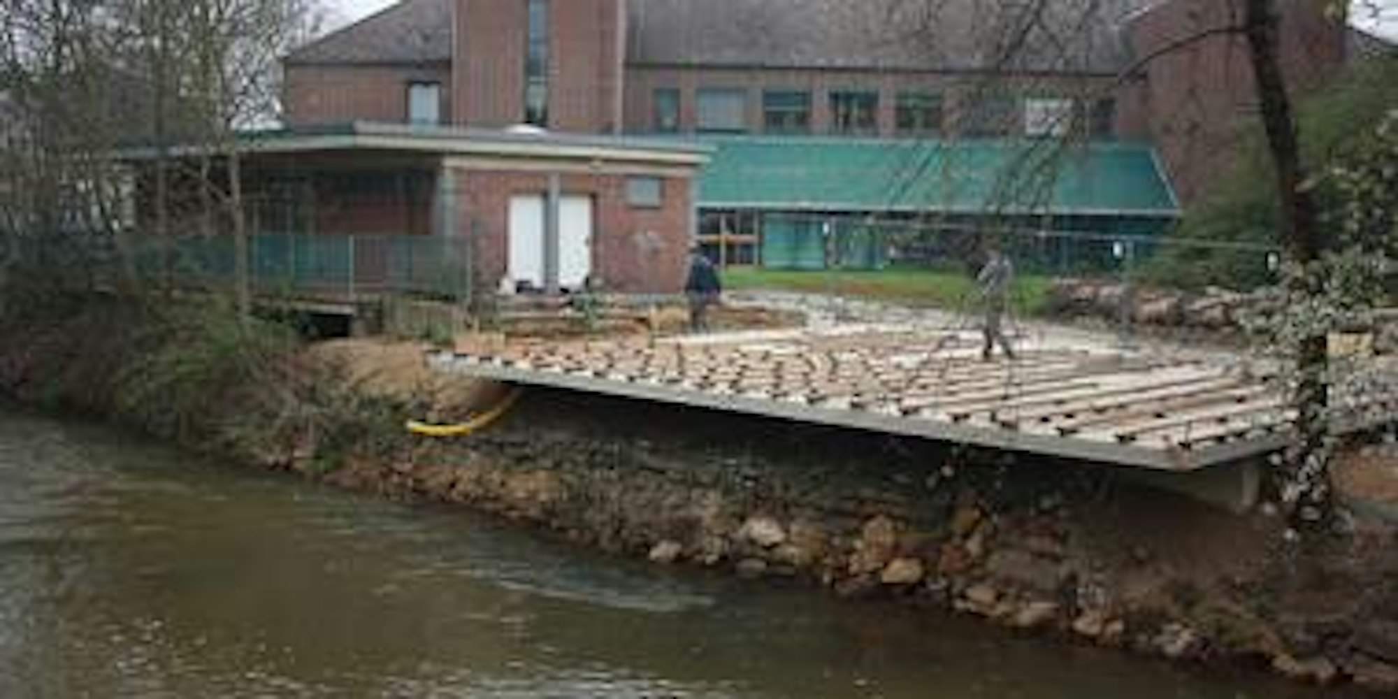 Ein neuer Biergarten entsteht zurzeit direkt an der Erft in der Bedburger Innenstadt. Noch im April soll eröffnet werden. (Foto: Graf)