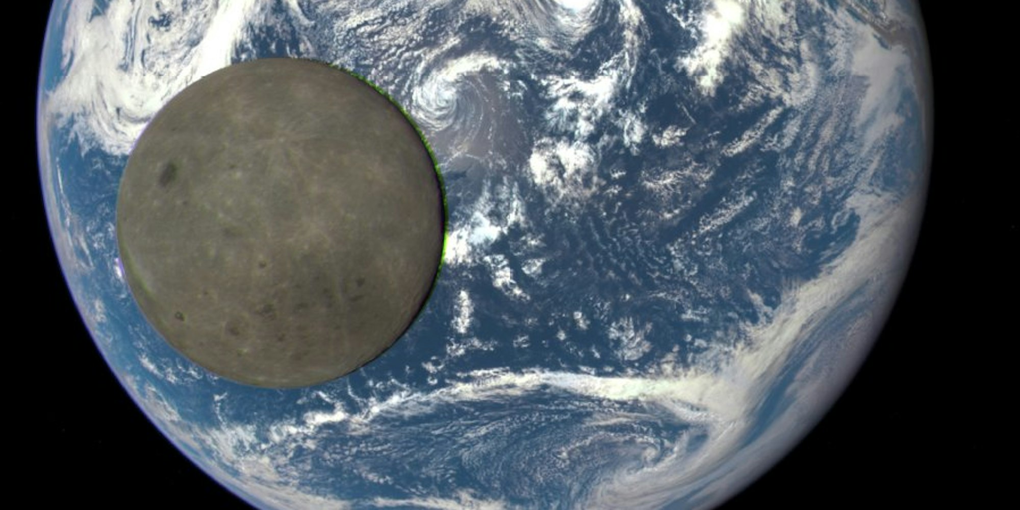 Die dunkle Seite des Mondes zusammen mit der Erde, fotografiert aus 1,6 Millionen Kilometer Entfernung.