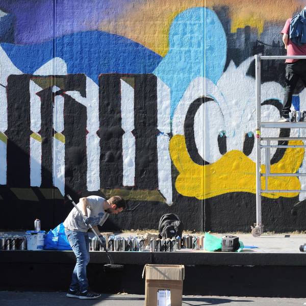 Müller-Konrad hat den damals recht verfallenen Hof nach dem Tod es Ehepaars Kirchgässer übernommen, aufwändig saniert und und in ein eigenes Atelier sowie ein kleines Kirchgässer Museum umgewandelt. So hat sie das originale Türschild aufbewahrt und stellt es gemeinsam mit Radierungen und ein paar erläuternden Worten zum Künstler aus. Dazu erzählt sie Besuchern Geschichten wie die von den zwei Partituren des Komponisten Karlheinz Stockhausen, die Kirchgässer für ihn gezeichnet hatte. „Die habe ich aus dem feuchten Keller gerettet und in der Sauna nebenan getrocknet“, erzählt Müller-Konrad, die sich selbst eher der abstrakten Malerei widmet. „Aber für meine Enkel male ich auch gerne mal eine Giraffe, die man als solche erkennen kann“, sagt sie lachend. Wer nicht bis zum Ostende der Stadt reisen wollte, der fand auch zentraler spektakuläre Unterhaltung, etwa am Kulturausbesserungswerk, wo eine Komposition aus Farbe, Feuer und Licht die Lebensgeister der Kultur nach dem langen Corona-Schlaf wiedererweckte.