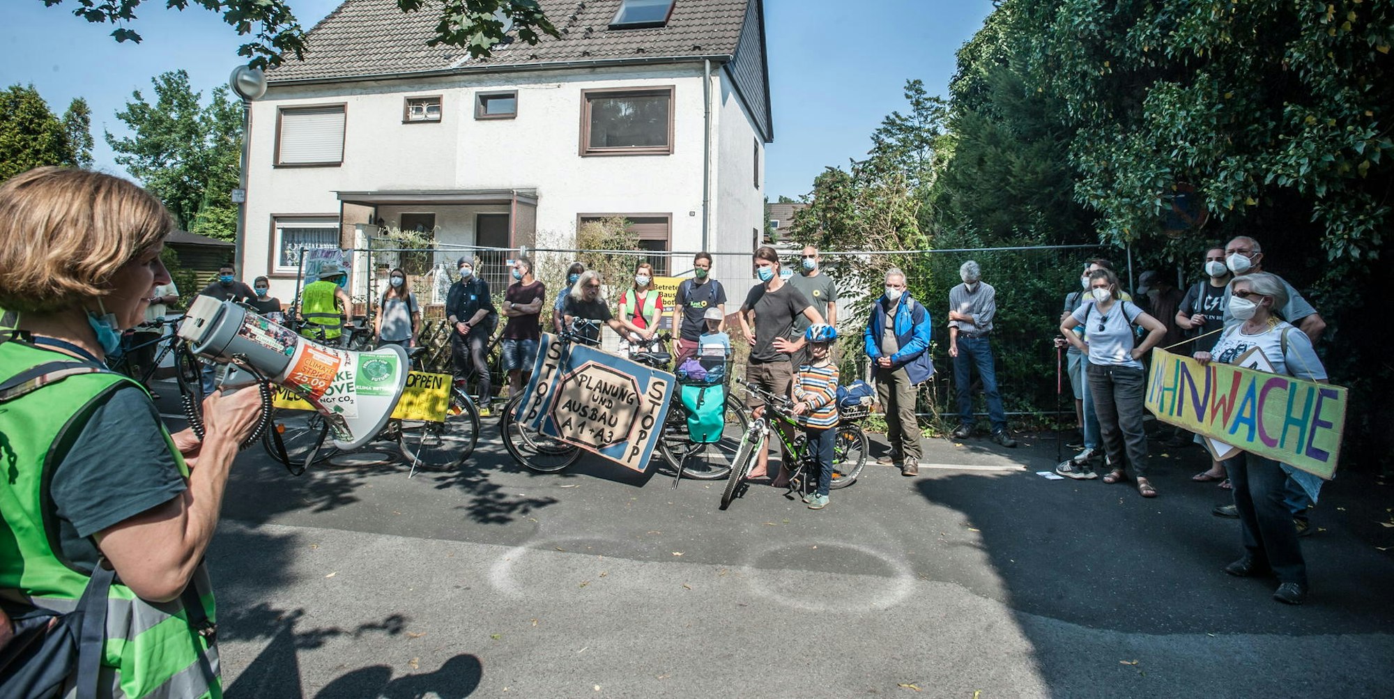 Leverkusen – An einem Doppelhaus an der Alsenstraße zeigt sich im Kleinen beispielhaft, welche Folgen der Autobahnausbau für die Stadt Leverkusen haben wird: Verlust von Stadt- und Lebensraum zugunsten der bisher üblichen Verkehrspolitik. Das halbe Haus soll abgebrochen werden, weil es der Autobahnverbreiterung im Wege steht. Auch Klimaschützer haben etwas gegen immer größere Autobahnen, deshalb trafen sich die „Parents for Future“ am Samstag zur Demonstration auf der Alsenstraße.