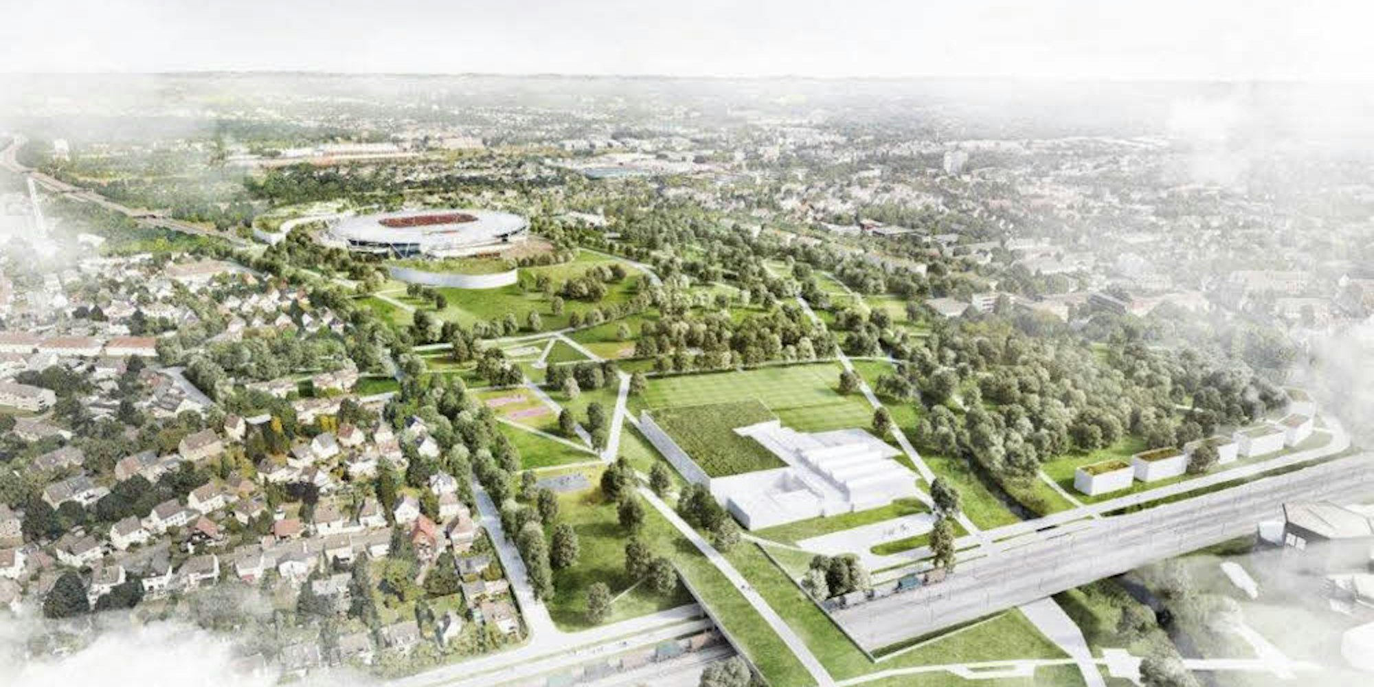 Mit beiden Vereinen haben schon intensive Gespräche stattgefunden. Ihre Vertreter verfolgten im Zuschauerraum konzentriert die Vorstellung der Planskizzen. Sie beinhalten eine deutliche Verkleinerung der Sportanlagen und eine Konzentration der Hallen, in einer Variante sogar die komplette Verlagerung aller Sportanlagen mit Ausnahme der BayArena aus dieser Zone, um den Park zu vergrößern.