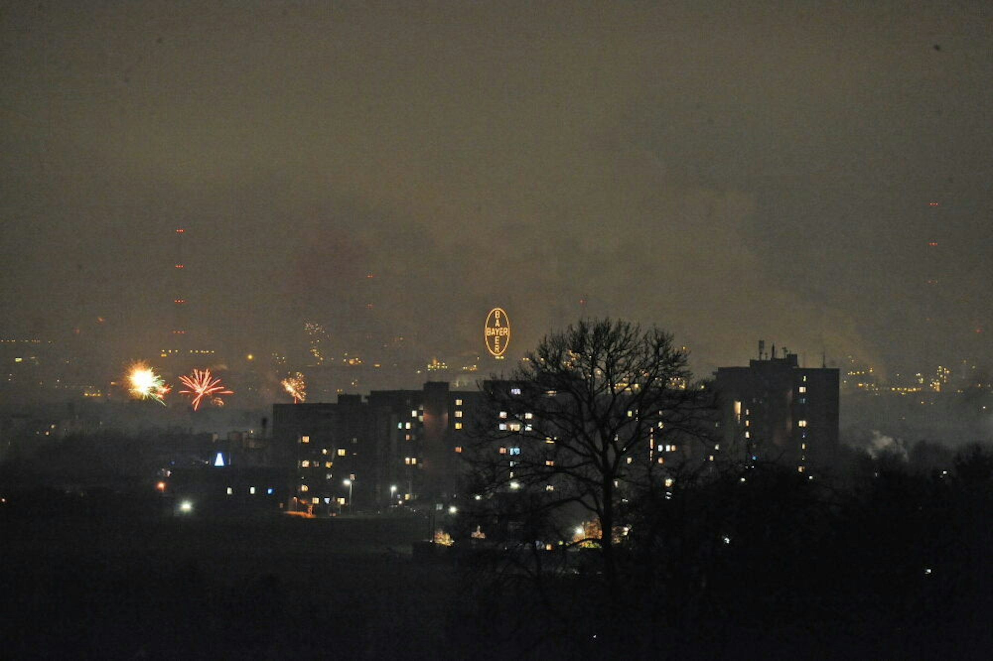 Das deutlich reduzierte Silvesterfeuerwerk 2020/2021 über Leverkusen.