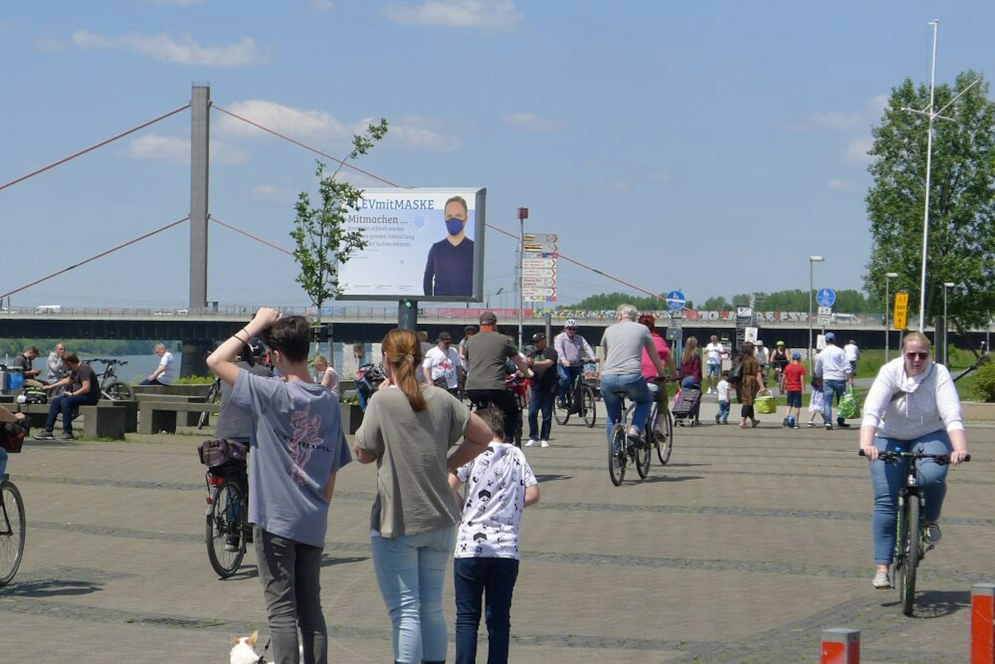 Das Wiesdorfer Rheinufer war bei erstmals wieder sonnigem Wetter an diesem Wochenende sehr gut besucht.