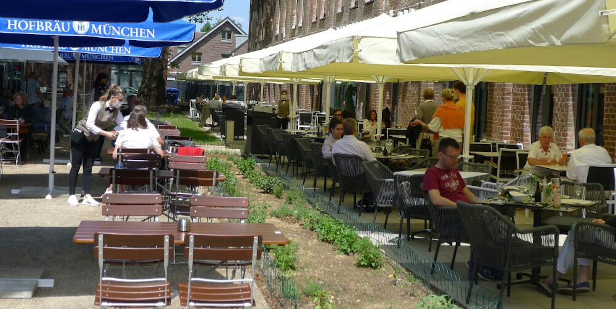 Zur Neueröffnung des Gallodini-Biergartens in der Neuen Bahnstadt musste noch auf Abstand geachtet werden.