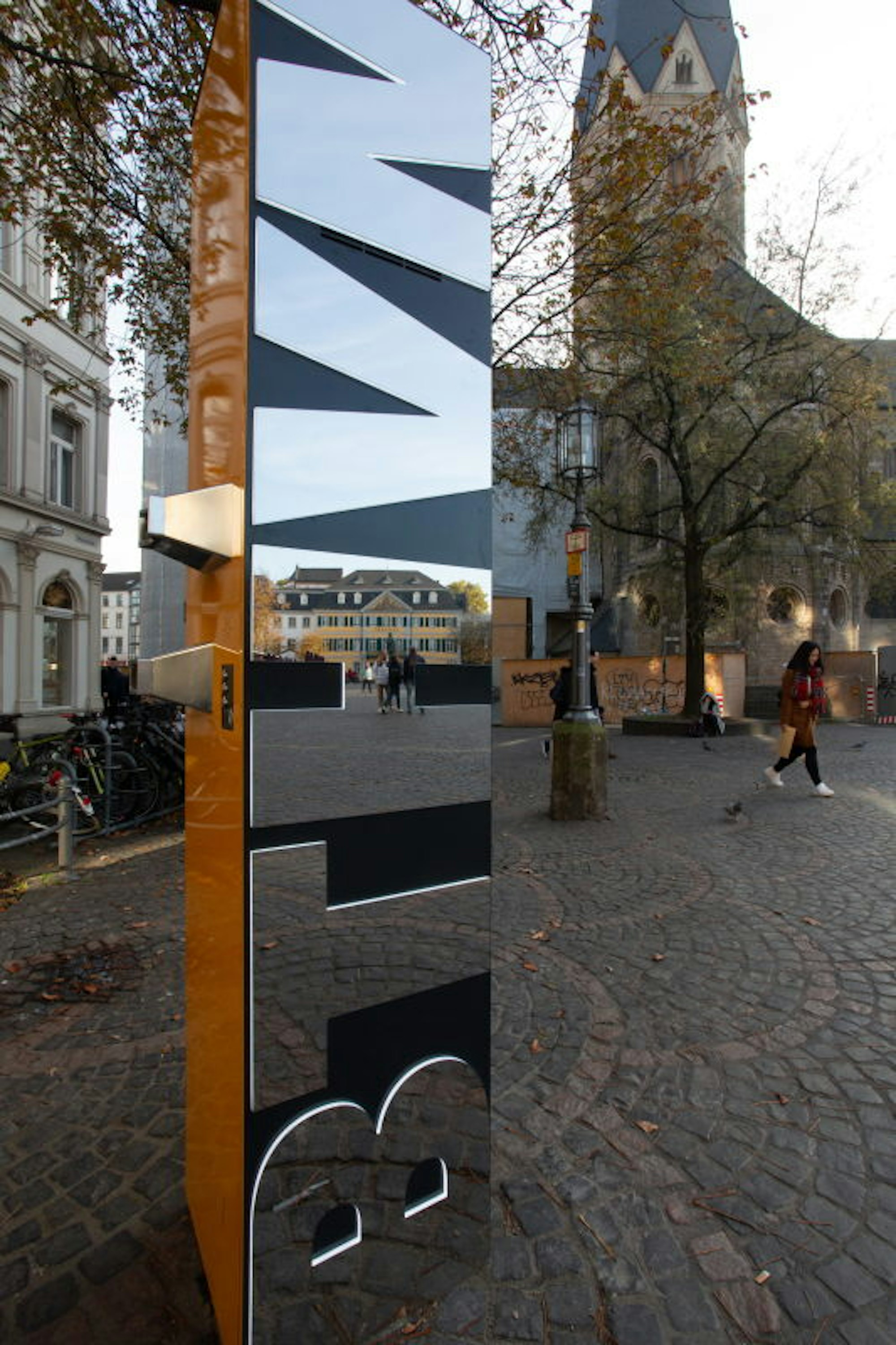 Bonn „glänzt“ mit Beethoven: Auf dem Münsterplatz ist eine der markanten Stelen des Rundwegs ein Hingucker.