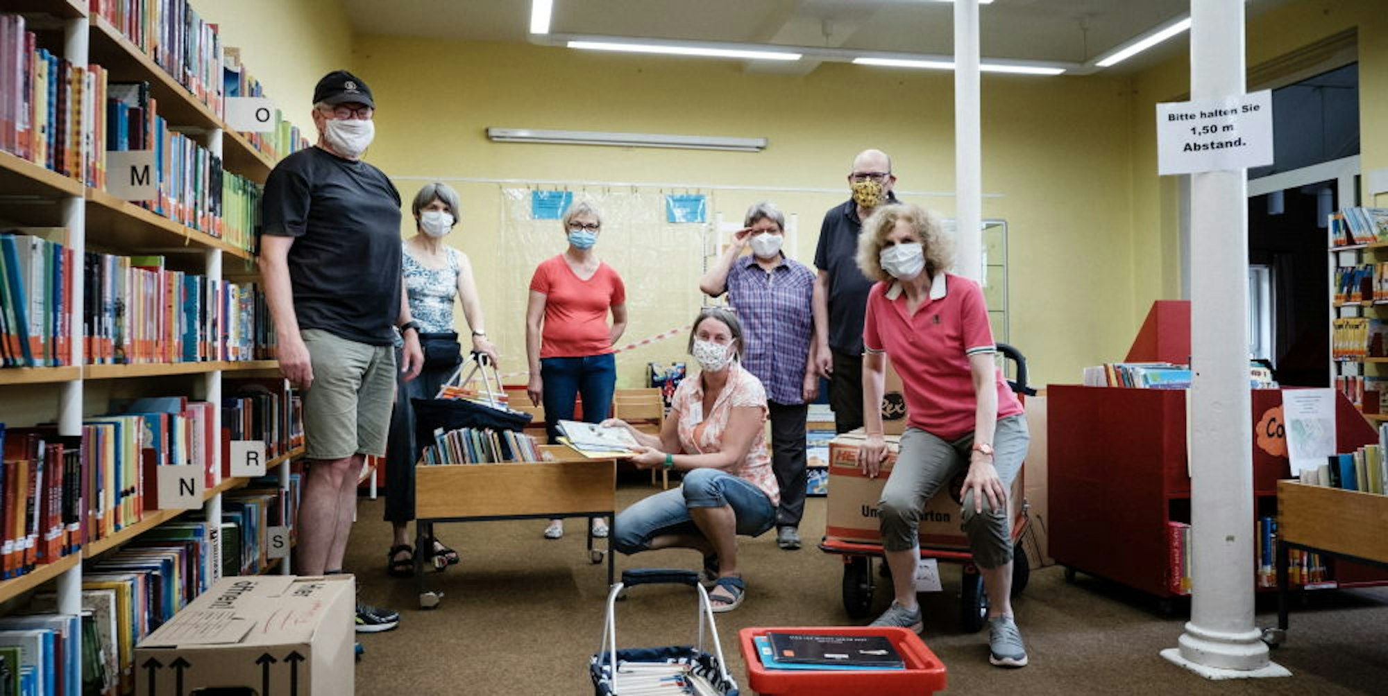 Das fleißige Team packte am Samstag so viel wie möglich ein, damit die Bücherei saniert werden kann.