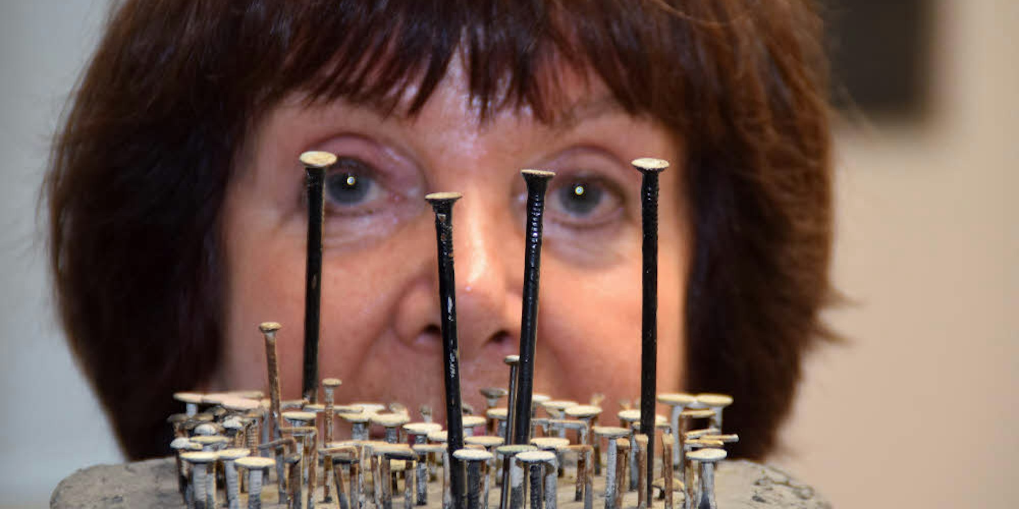 Einige der „Nagelplantagen“ von Hubert Berke wird dessen Tochter Eva Ohlow im Schloss Alfter zeigen.