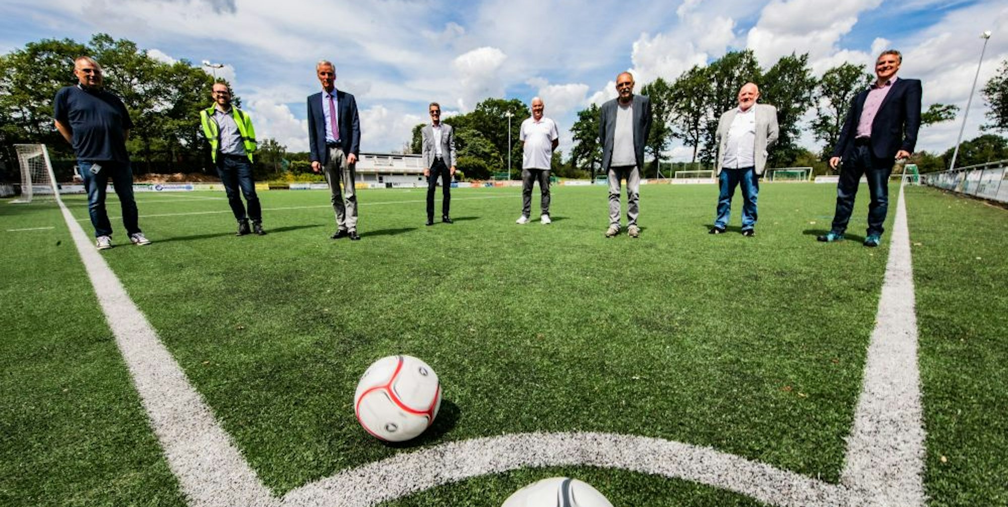 Auf dem Kunstrasenplatz konnten sich alle Beteiligten ein eigenes Bild von der neuen Technik machen.