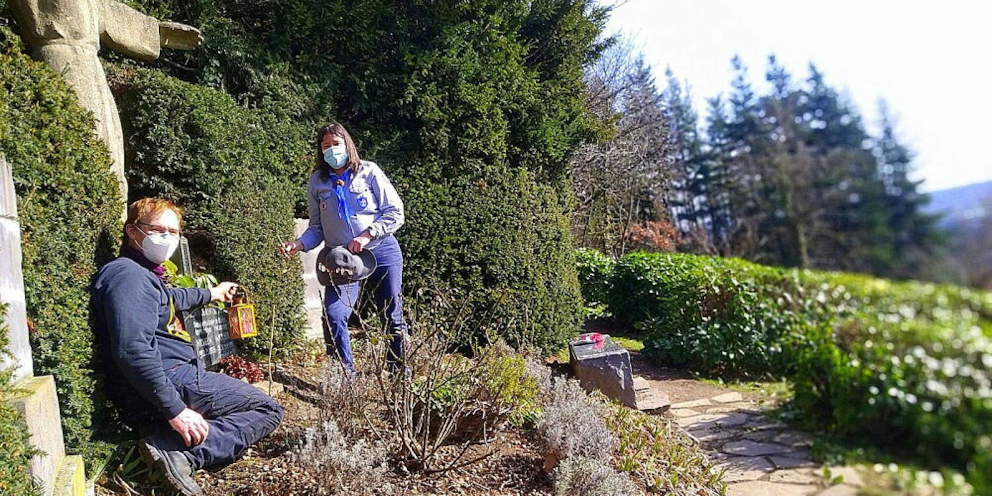 Da das Vereinsleben ruht, geschieht das meiste im Verborgenen: „Wir haben uns wie die Heinzelmännchen gefühlt. Um die Abstände einzuhalten, haben wir unsere Arbeiten in diesem Jahr auf zwei Wochenenden verteilt“, schilderte Benz. Vorbeigeschaut haben auch Heidi und Gerald Möller vom Pfadfinderstamm Martin Bucer vom Brüser Berg, die das Friedenslicht vorbeibrachten. In den vergangenen Jahren gingen immer auch Jugendliche den Helfern vom Friedensweg zur Hand, dies war nun allerdings nicht möglich.