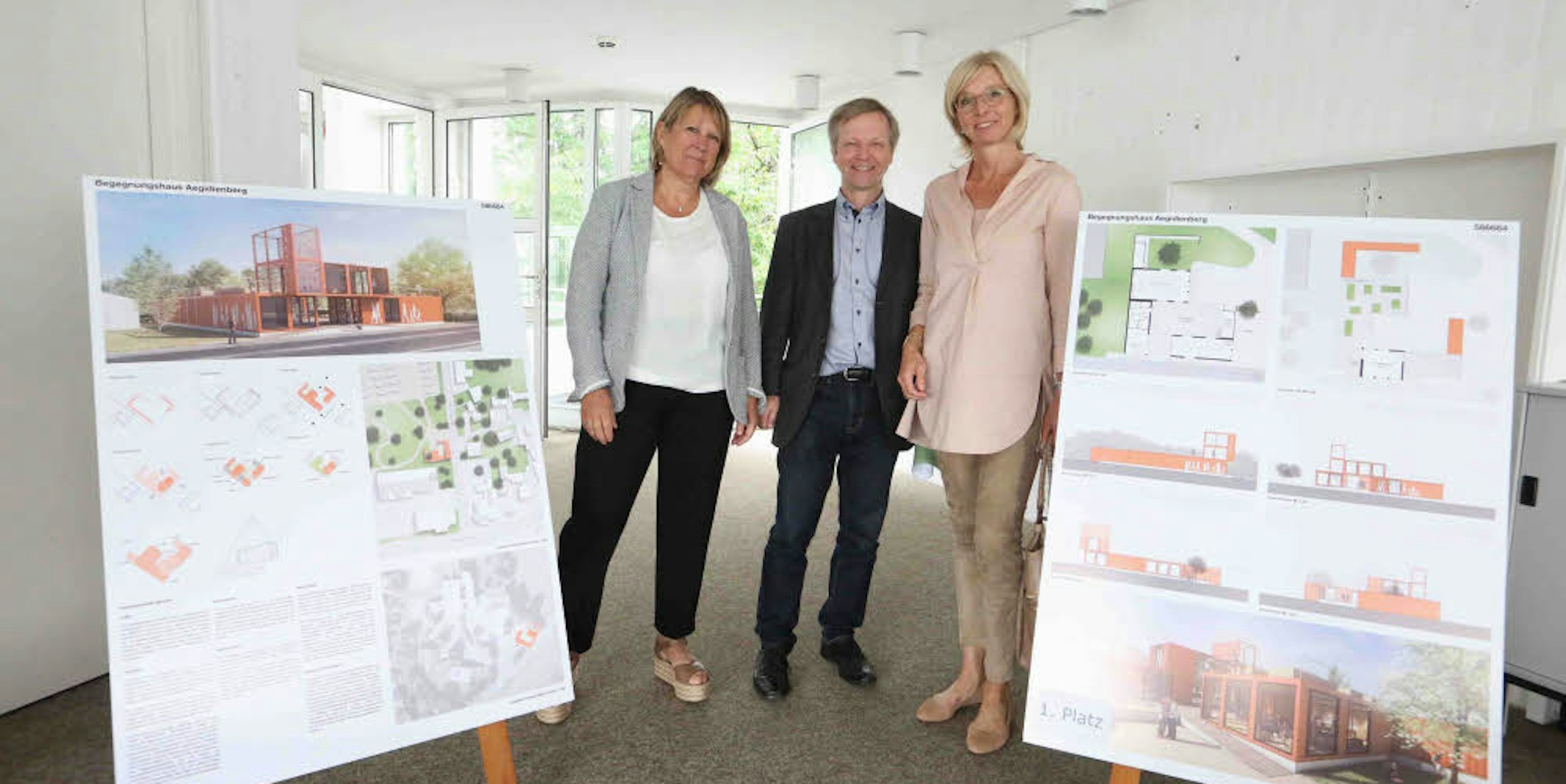 Im Juni vorigen Jahres stellten (v.l.) Adriane Niedner-Siebert, Otto Neuhoff und Anja Hupperich den Siegerentwurf vor. Statt der damals vorgesehenen Seecontainer ist inzwischen ein Holzbau geplant. In den nächsten Wochen soll es losgehen.