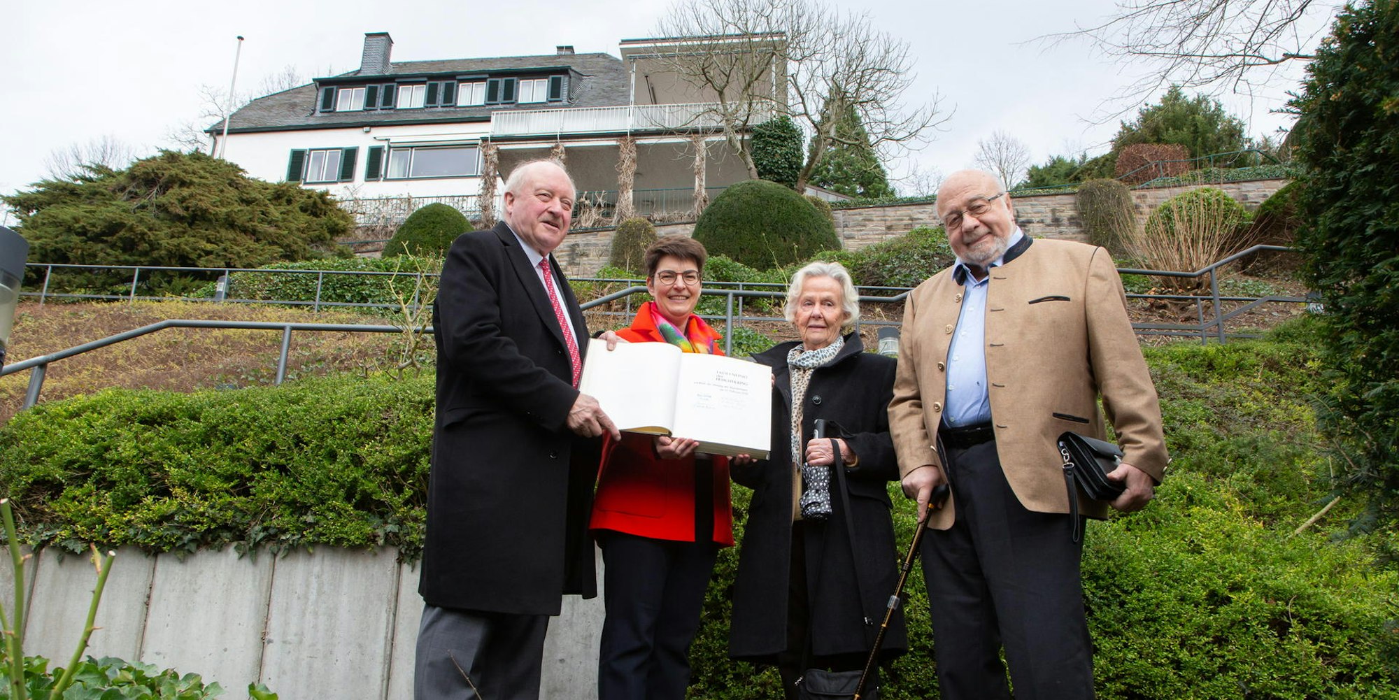 An die Öffnung des Adenauer-Wohnhauses vor 50 Jahren erinnern (v.l.) Konrad Adenauer, Corinna Franz, Agnes Bröhl und Gerhard Herdegen.