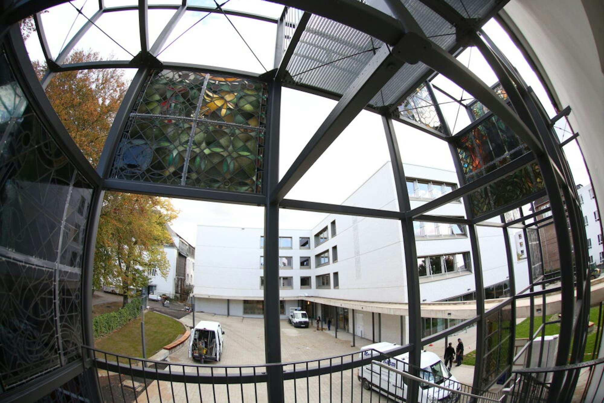 Der Schulleiter und das Sekretariat sind jetzt im denkmalgeschützten Haus Magdalena untergebracht, das aus Sicherheitsgründen außen um eine Feuertreppe erweitert werden musste. Damit es nicht nur eine schlichte Stahlkonstruktion ist, wurden Teile der Fenster der ehemaligen Kapelle, die dem Schulneubau weichen musste, in die Konstruktion eingesetzt. Die Glocken aus der Kapelle sollen nach Fertigstellung ihren Platz in einem neuen Glockenturm bekommen.