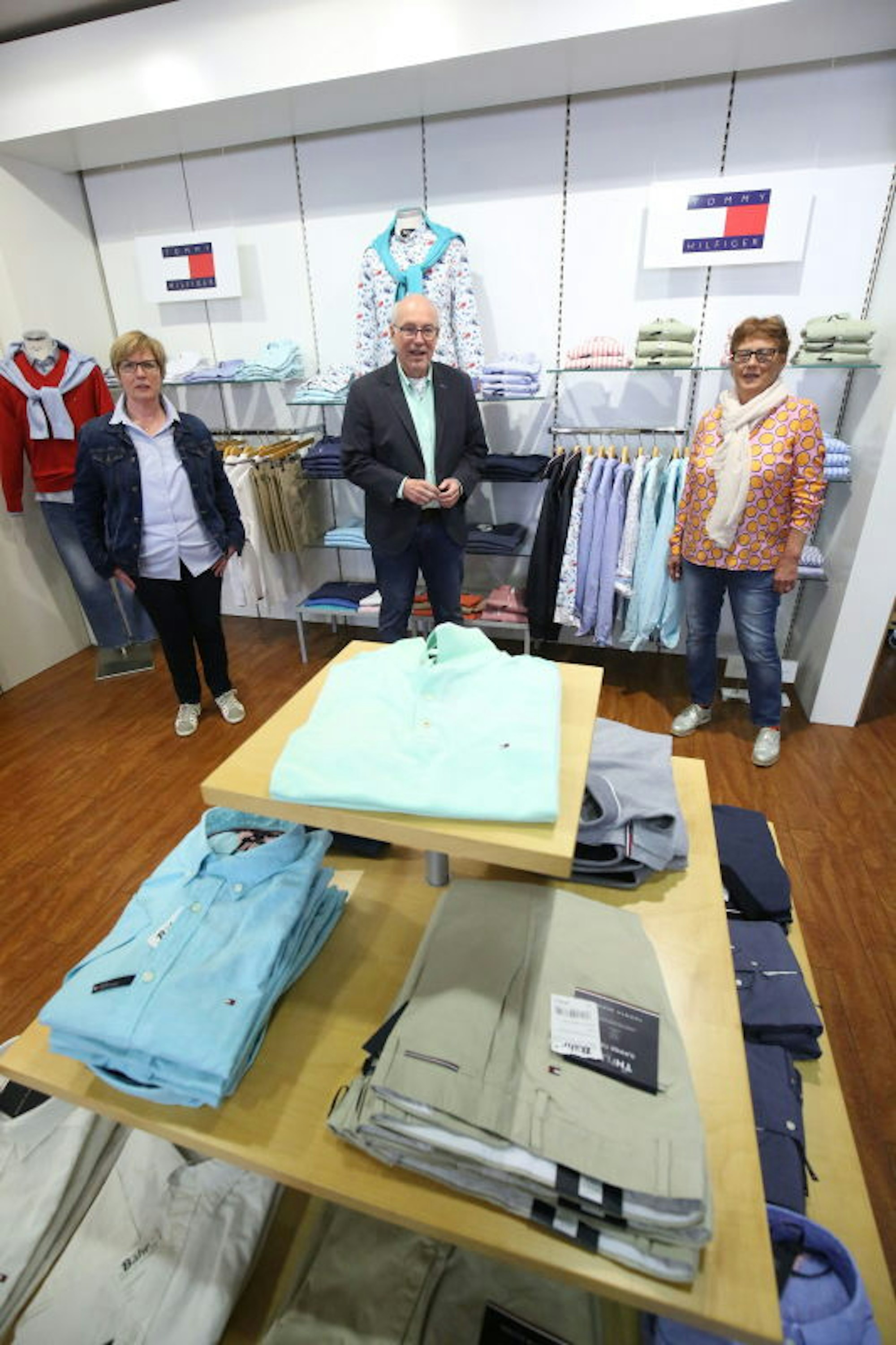 Sind bereit: Im Herrenmodehaus freuen sich (v.l.) Gisela und Reinhold Bähr und ihre Mitarbeiterin Ulrike Schwipper auf Kundschaft.