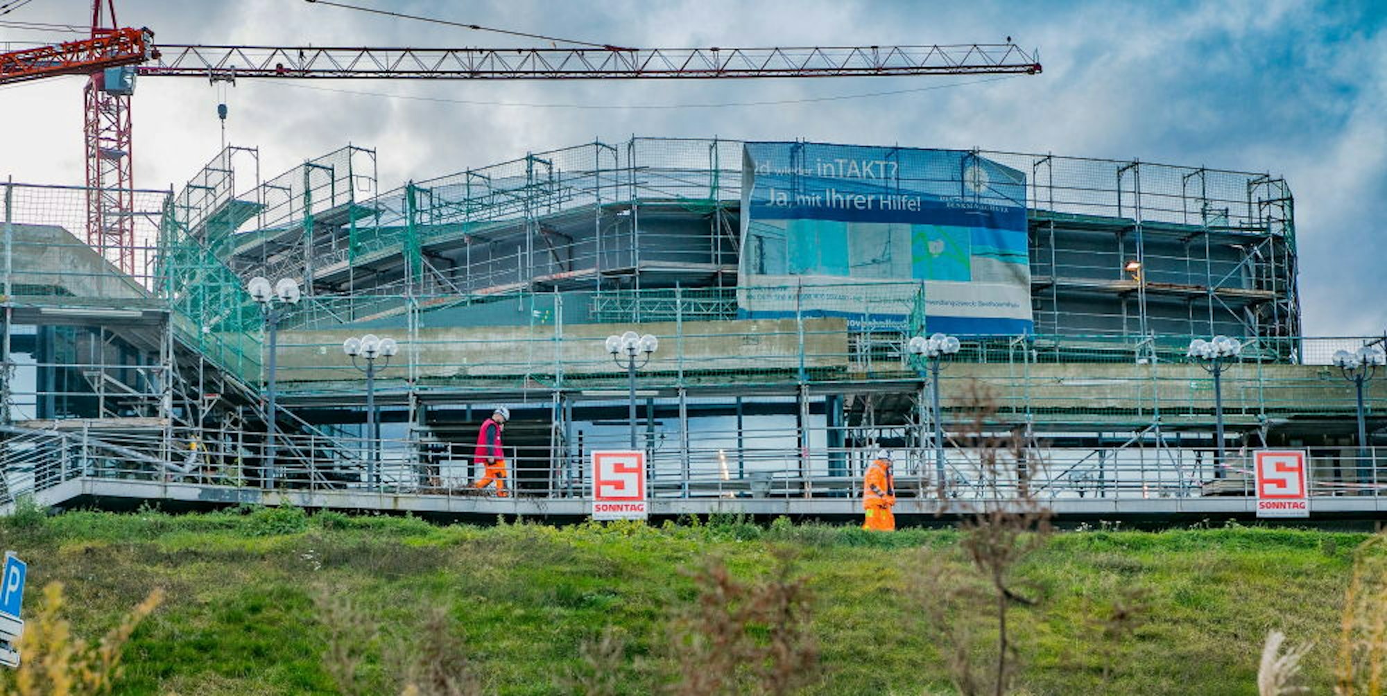 Kommt gut voran: Auf der Baustelle von „Urban Soul“ wird gleich bei zwei Gebäuden Richtfest gefeiert.