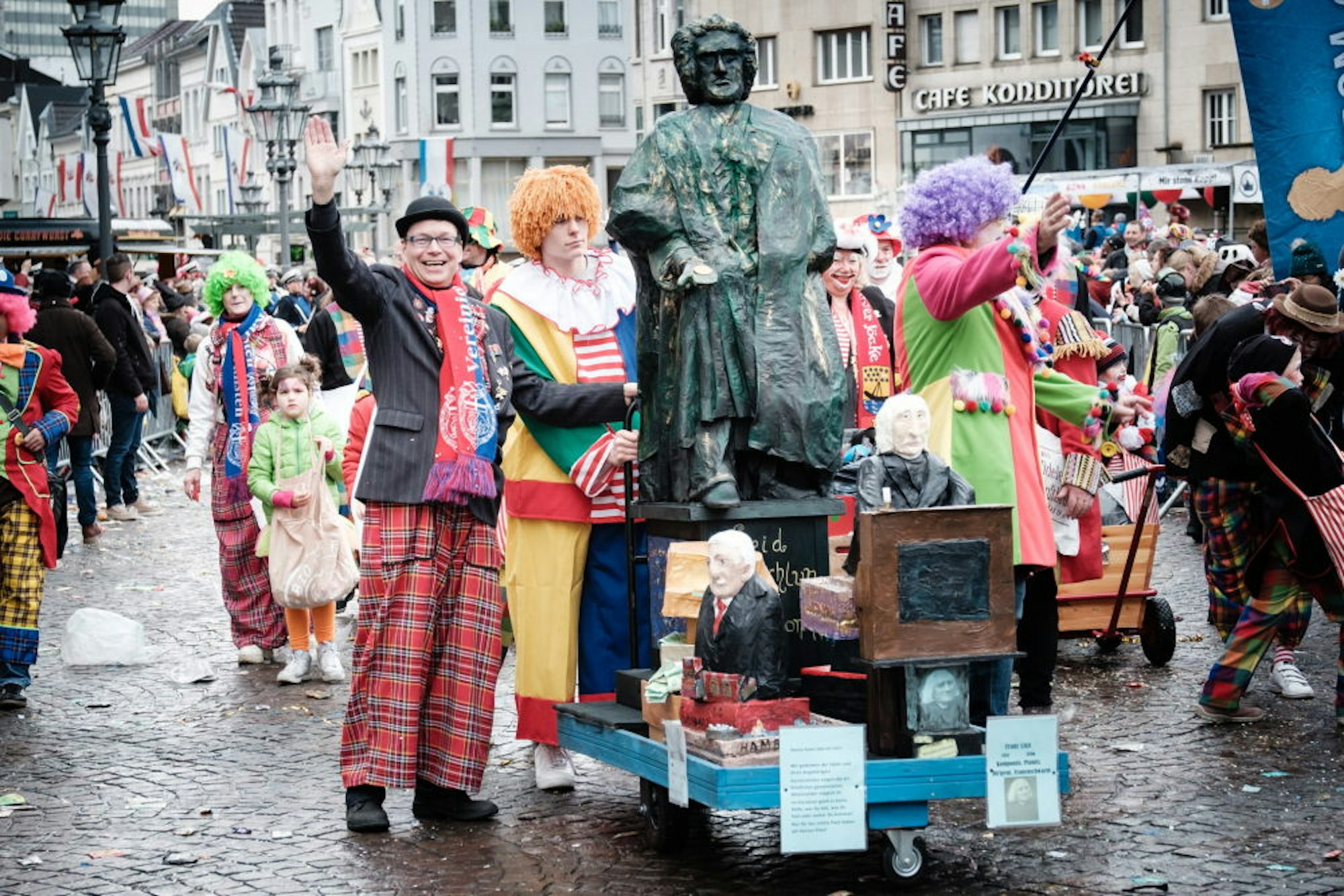 Ansonsten war Ludwig van Beethoven der Star des mit fast 6000 Teilnehmern wohl längsten Bonner Rosenmontagszugs aller Zeiten. Er brauchte fast fünf Stunden, bis er von der Thomas-Mann-Straße aus in die Altstadt rollte und war da noch nicht am Ziel der vier Kilometer langen Strecke. Rund 250 000 Zuschauer jubelten den Jecken und dem Prinzenpaar Richard I. und Katharina III. zu, berichtete am Abend Zugleiter Axel Wolf.