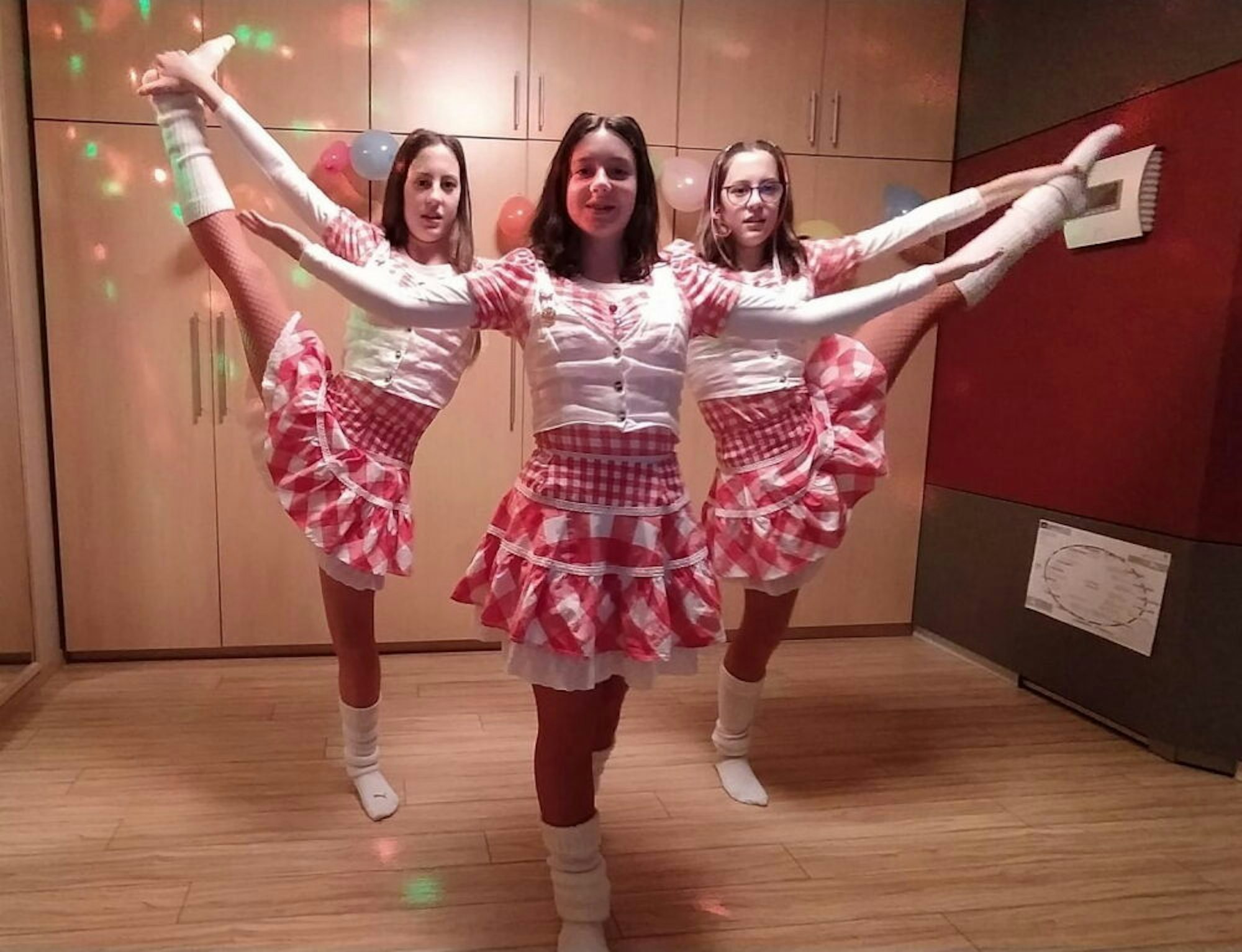 An ihre Proklamation erinnerten Prinzessin Samy Maaß (vorne), Bäuerin Lena Schömer und Jungfrau Nicole Schömer mit einem Tanz.