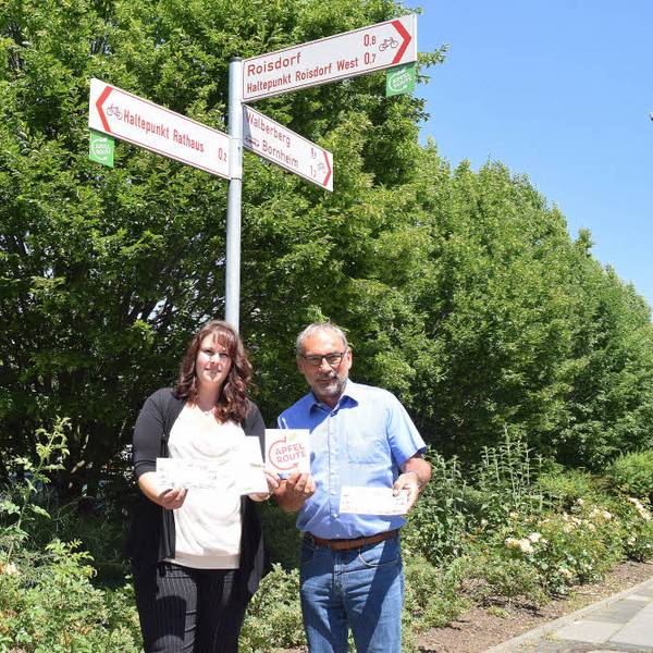 Einen E-Bike-Verleih gibt es nicht direkt an der Bornheimer Schleife der Rheinischen Apfelroute, wohl aber an der Hauptroute am Bahnhof in Roisdorf. Die Ausleihe kostet für 30 Minuten zwei Euro, maximal 18 Euro für 24 Stunden. Eine E-Bike-Ladestation steht in Waldorf beim Biohof Bursch.