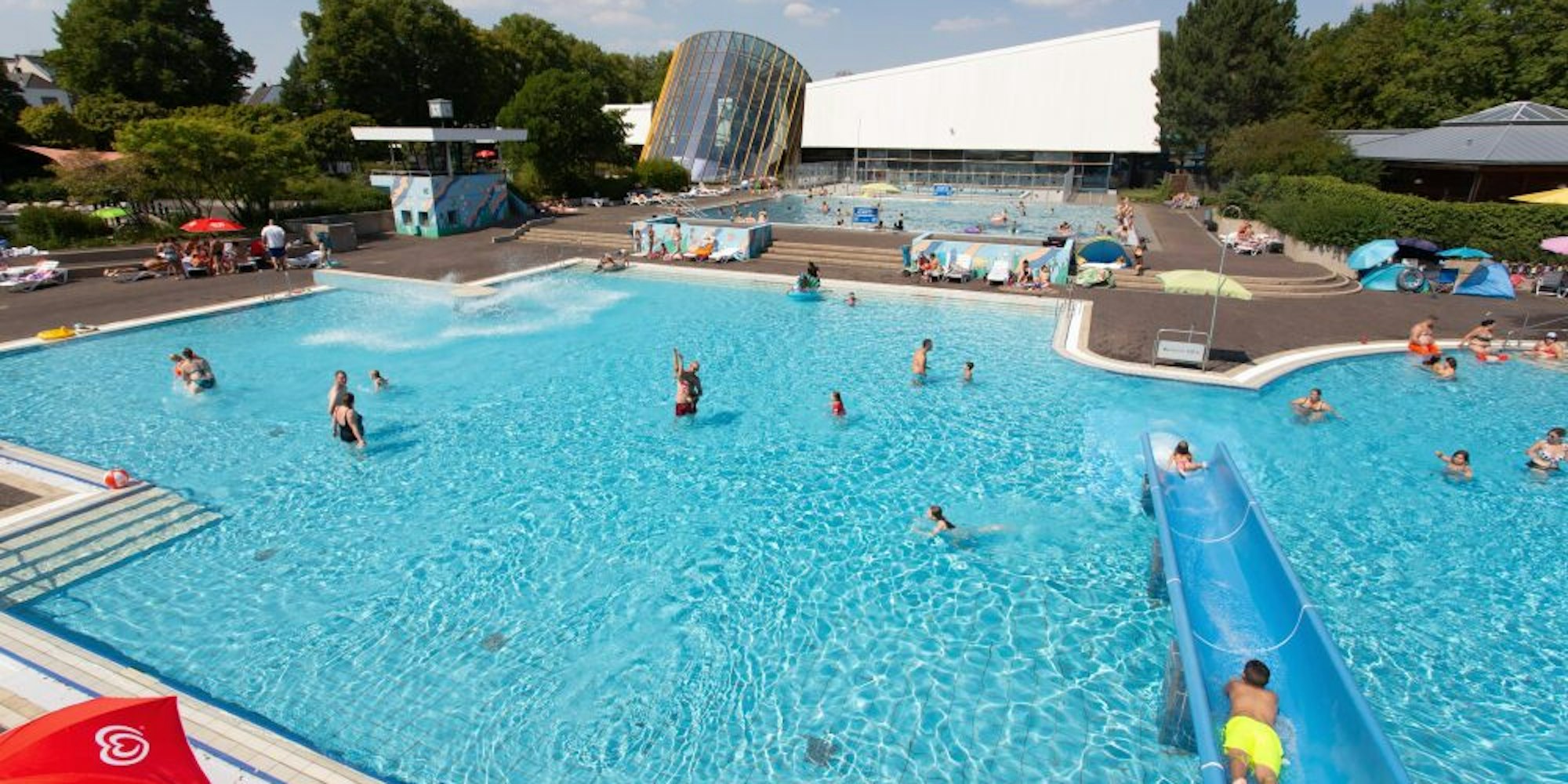 Bornheim – „Ausverkauft“ hieß es vergangenen Donnerstag zum vorerst letzten Mal. Wer während der Hitzewelle der vergangenen zwei Wochen online ein Freibad-Ticket für das HallenFreizeitBad (HFB) in Bornheim ergattern wollte, musste fix sein. 13 Mal waren laut Ulrich Rehbann, Vorstand des StadtBetriebBornheim (SBB), in dieser Zeit die Tagestickets für den Freibadbereich ausverkauft. Der SBB als Anstalt des Öffentlichen Rechts ist Betreiber des Bades.