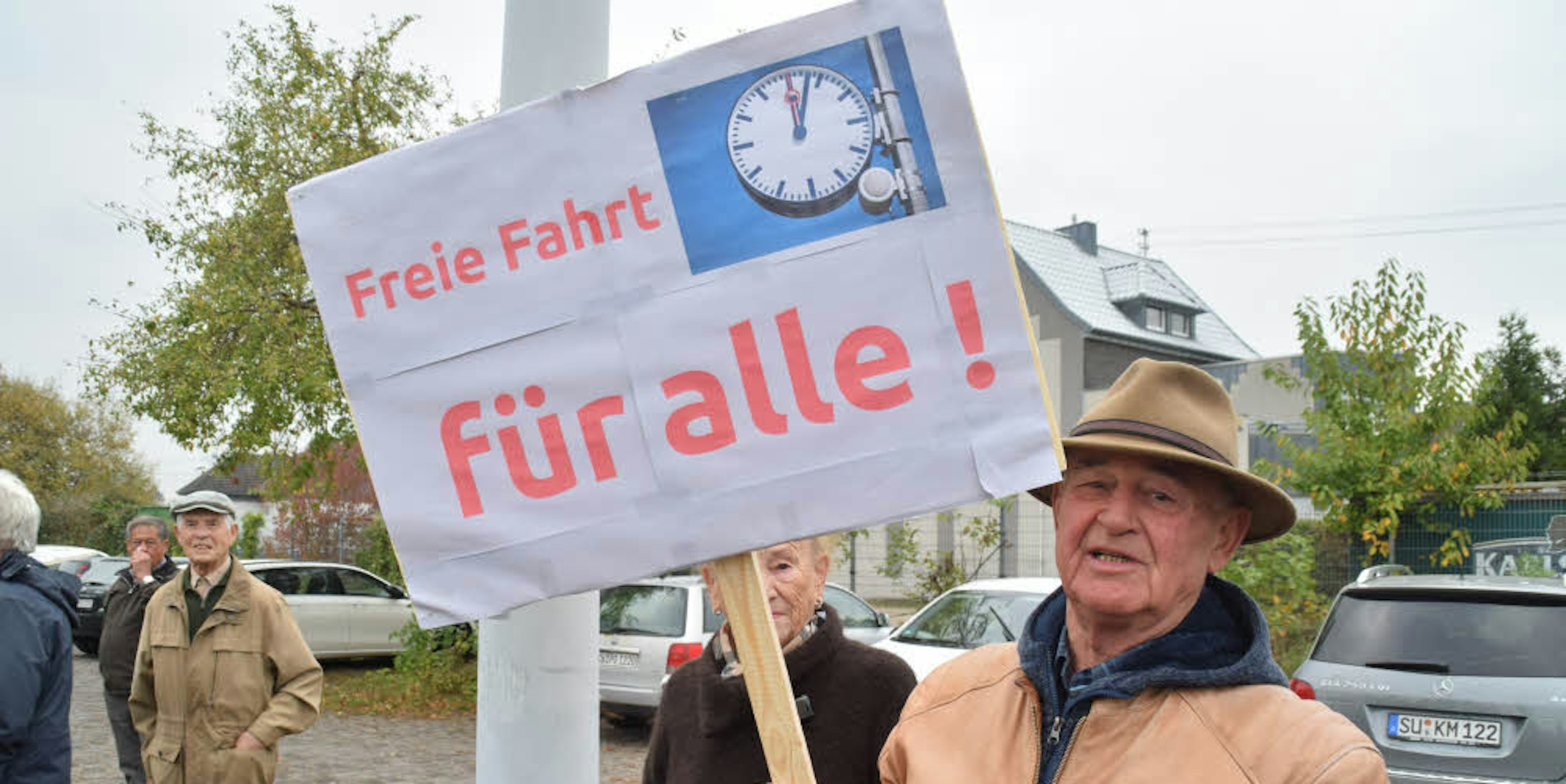 Die 40 älteren Damen und Herren waren gestern der Aufforderung des Bornheimer Seniorenbeirates gefolgt, diesmal am Bahnhaltepunkt in Widdig, für den barrierefreien Ausbau zu demonstrieren. Ihre Forderung: Die Bahnsteige in Urfeld, Widdig, Uedorf und Hersel sollen auf eine Höhe angepasst werden, damit Senioren mit Rollatoren, Menschen mit Behinderung, aber auch Eltern mit Kinderwagen gefahrlos in die Bahnen ein- und aussteigen können. Auch einen Fahrgastbetreuer wünschen sich die Senioren, der ihnen gegebenenfalls hilft.
