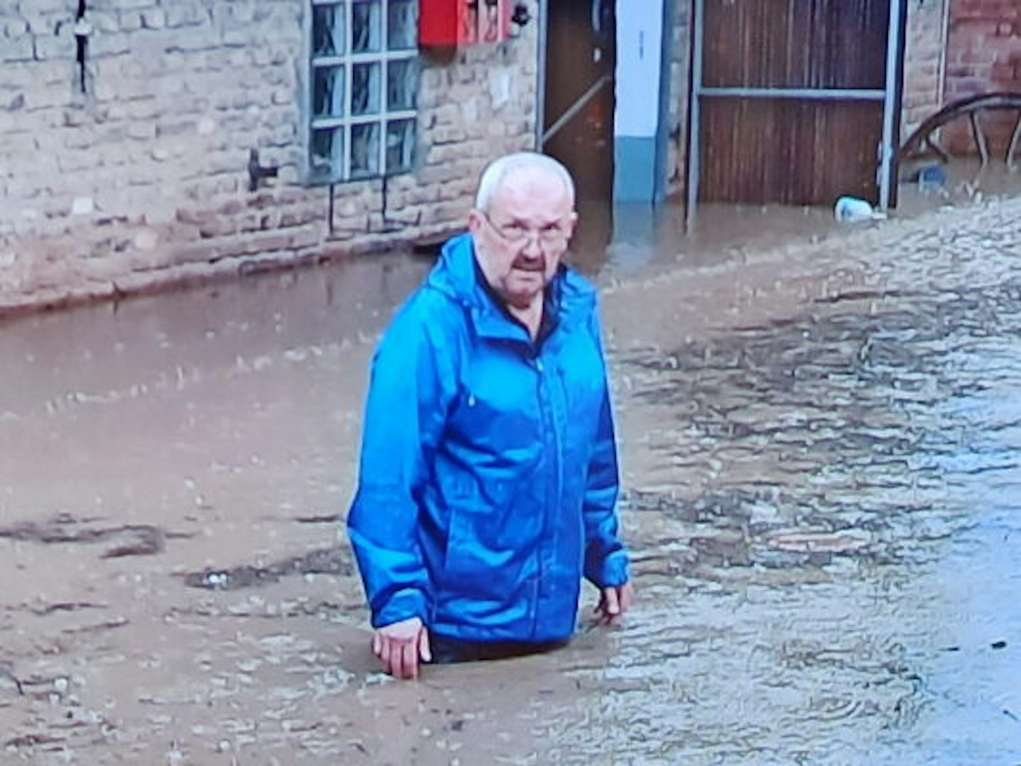 Heinz-Peter Kuhl stand im Innenhof seines Hauses bis zur Hüfte im Regenwasser.