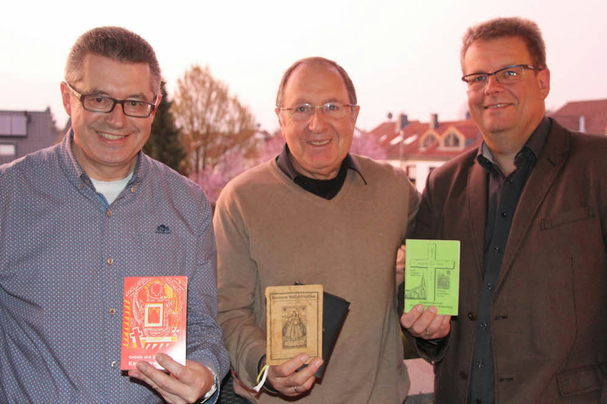 Hans Dieter Wirtz, Werner Nonn und Ulrich Breuer (v. l.) zeigen alte und aktuelle Wallfahrtsbüchlein.