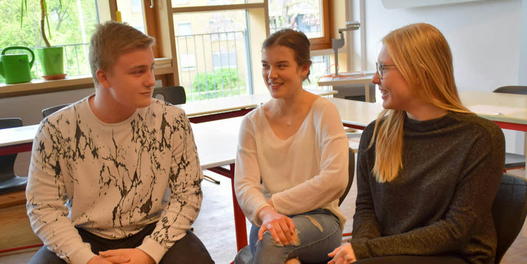 Alle drei stehen kurz vor dem Abitur und damit noch am Anfang ihrer beruflichen Karriere. Da stellt sich natürlich die Frage, wie sie sich die EU der Zukunft vorstellen und was sie für Wünsche an die künftigen Parlamentarier haben? Lars Feiler wünscht sich, dass die Länder noch weiter zusammenrücken. Er lehnt Kleinstaaterei ab und hofft, dass sich so etwas wie der Brexit nicht wiederholt: „Als Kleinstaaten können wir gegen eine Wirtschaftsmacht wie China nicht ankommen“, meinte der 17-Jährige. Leonie und Sarah sehen dies ähnlich und hoffen, dass der Brexit für viele andere ein schlechtes Beispiel ist. Auch sie sind sich sicher, dass sich die großen Probleme der Zukunft nur gemeinsam lösen. Alle drei bedauern, dass sie noch nicht wählen dürfen, weil sie noch nicht volljährig sind.