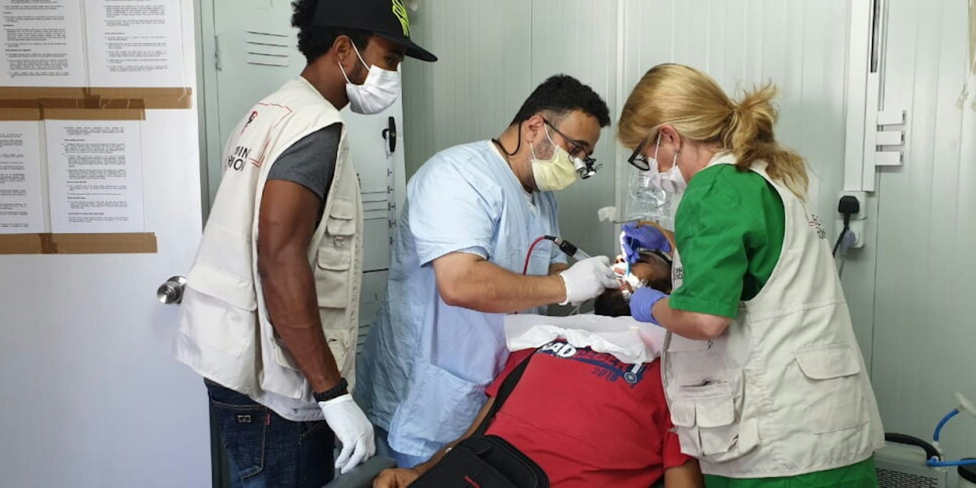 ist eine gemeinnützige Hilfsorganisation, die für die Bereitstellung von medizinischen, zahnmedizinischen und pädagogischen Dienstleistungen für Vertriebene unabhängig von Religion, Rasse und Nationalität eingerichtet wurde. „Wir haben dort unter rudimentären Bedingungen gearbeitet, wir leisten zahnärztliche Notfallbehandlung“, schildert Schafigh. Es gehe primär darum, Karies, Abszesse oder gar Kieferbrüche zu behandeln. Komplizierte Wurzelbehandlungen sind kaum durchzuführen, Röntgenaufnahmen nicht möglich. Jeder Zahnarzt bringt sein eigenes Material mit, das er über Spenden finanziert hat. Im Schnitt behandelt ein Dentist 25 bis 30 Patienten pro Tag.