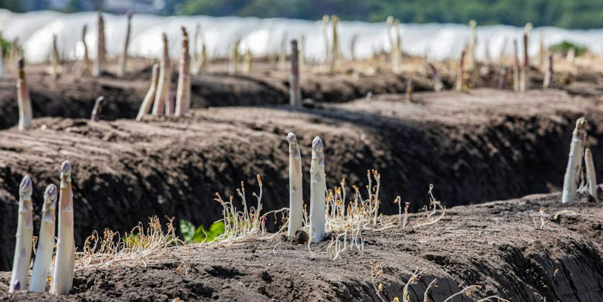 Das „königliche Gemüse“ bietet ein trauriges Bild: Hier wächst der Spargel aus den Dämmen heraus.
