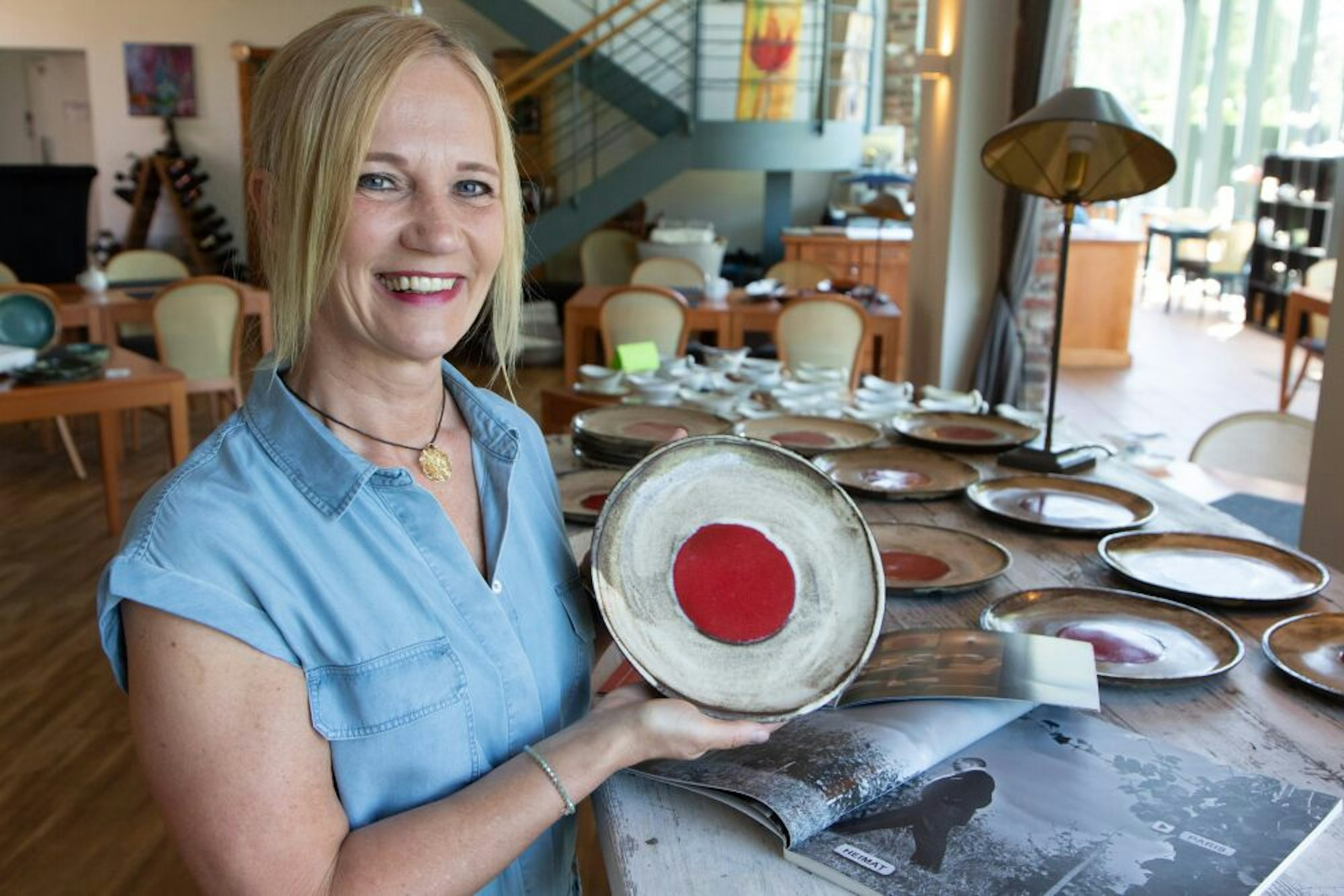 Um Hobby und Beruf zusammenzuführen, bedurfte es allerdings des Anstoßes ihres Lebenspartners. Marc Wadehn sprach irgendwann den entscheidenden Satz: „Mach doch mal ’nen Teller.“ Geschirr gehört schließlich zu den Visitenkarten einer guten Küche. So wurde die simple und doch nahe liegende Aufforderung zu einer Initialzündung. „Immer, wenn ich seitdem neues Geschirr für unser Restaurant herstelle, ist die Freude riesig, sowohl in der Küche als auch bei den Gästen“, sagt van Hasselt.