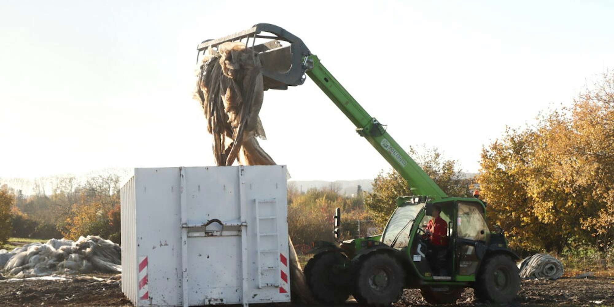 „Am 1. Oktober haben wir unser Areal wieder übernommen und direkt mit den Aufräumarbeiten hier angefangen“, berichtete Langen. Mehr als 500 Tonnen Müll habe er seitdem bereits entsorgt. „Doch noch sind wir nicht fertig“, sagt der 52-jährige Landwirt aus Kerpen-Buir. So fahren immer noch mehrmals die Woche schwere Container-Transporter mit einem Fassungsvermögen von 40 Kubikmetern vor, um den sortieren Müll einzuladen und abzuholen. „Bald sind wir durch“, sagt Langen.
