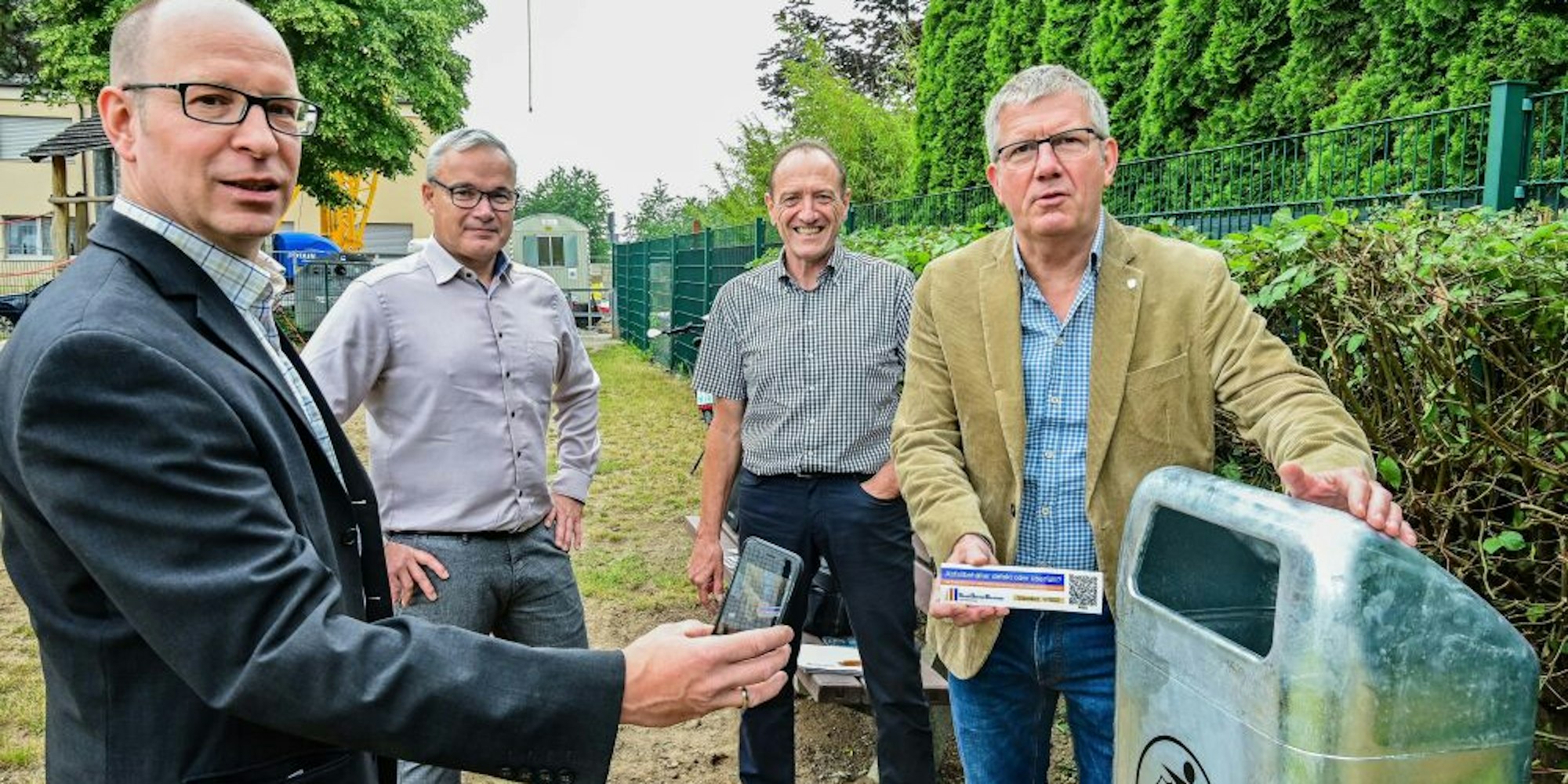 Den neuen Online-Mängelmelder stellte Bürgermeister Christoph Becker gemeinsam mit Widdigs Ortsvorsteher Christoph Kany, dem Leiter des Umwelt- und Grünflächenamtes Wolfgang Paulus sowie Oliver Schmitz, Stellvertretender Vorstand des SBB, auf dem Widdiger Spielplatz zwischen Alemannenweg und Wikingerstraße vor.