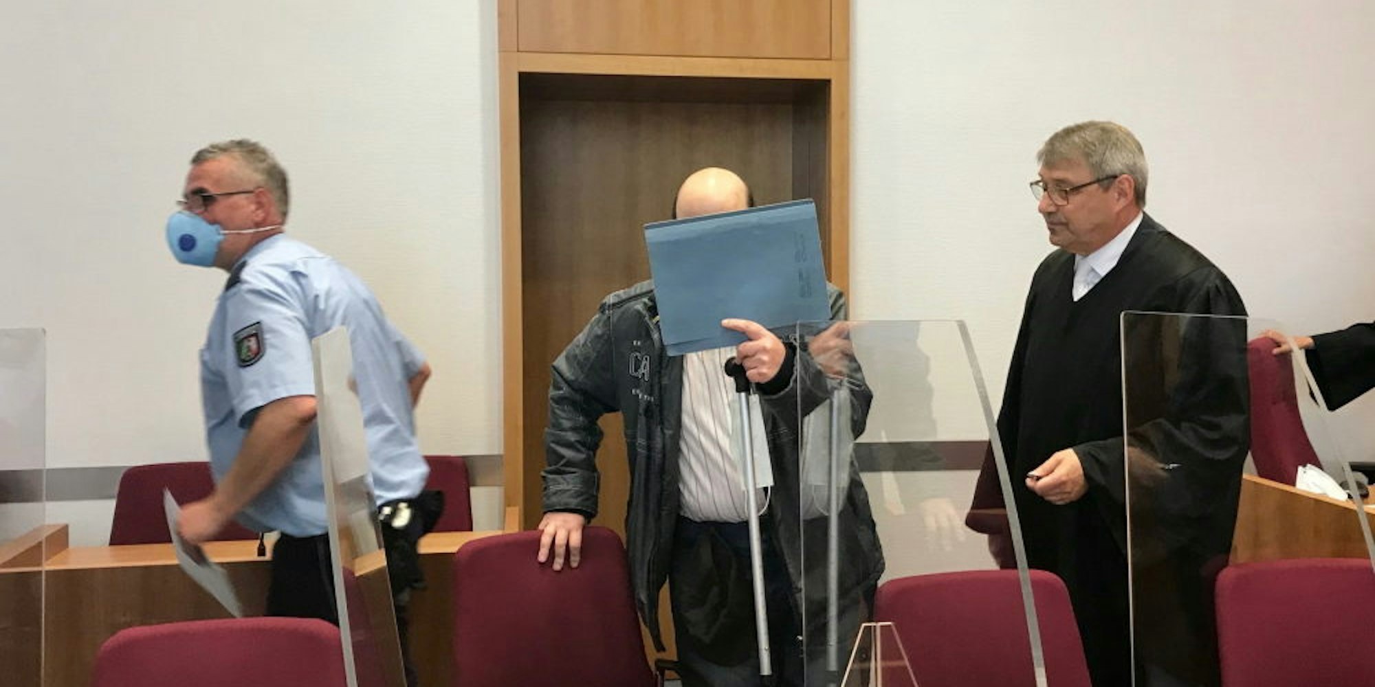 Hinter einer Kladde verbarg der 49-jährige Angeklagte sein Gesicht.