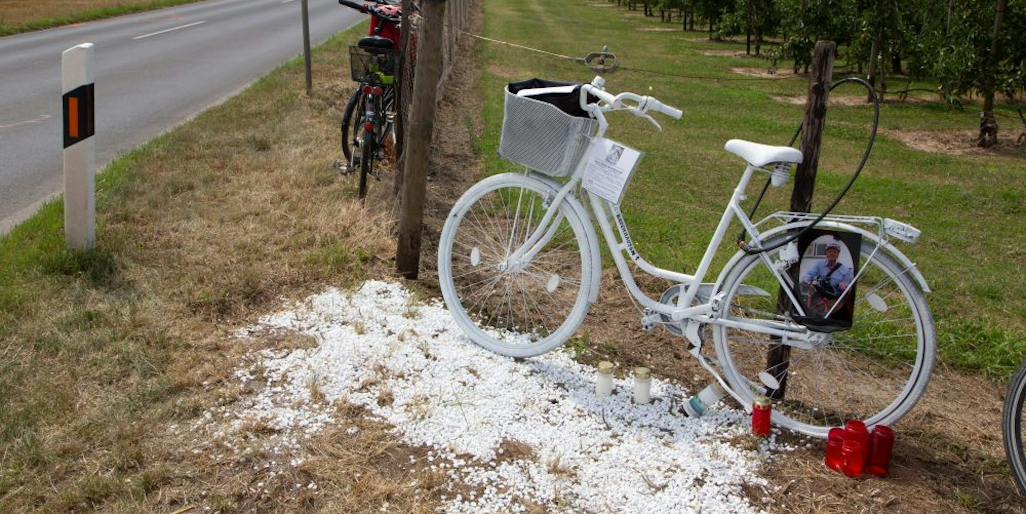 Weggefährten installierten ein weißes Fahrrad zur Erinnerung und als Mahnung für alle Verkehrsteilnehmer an der Straße.