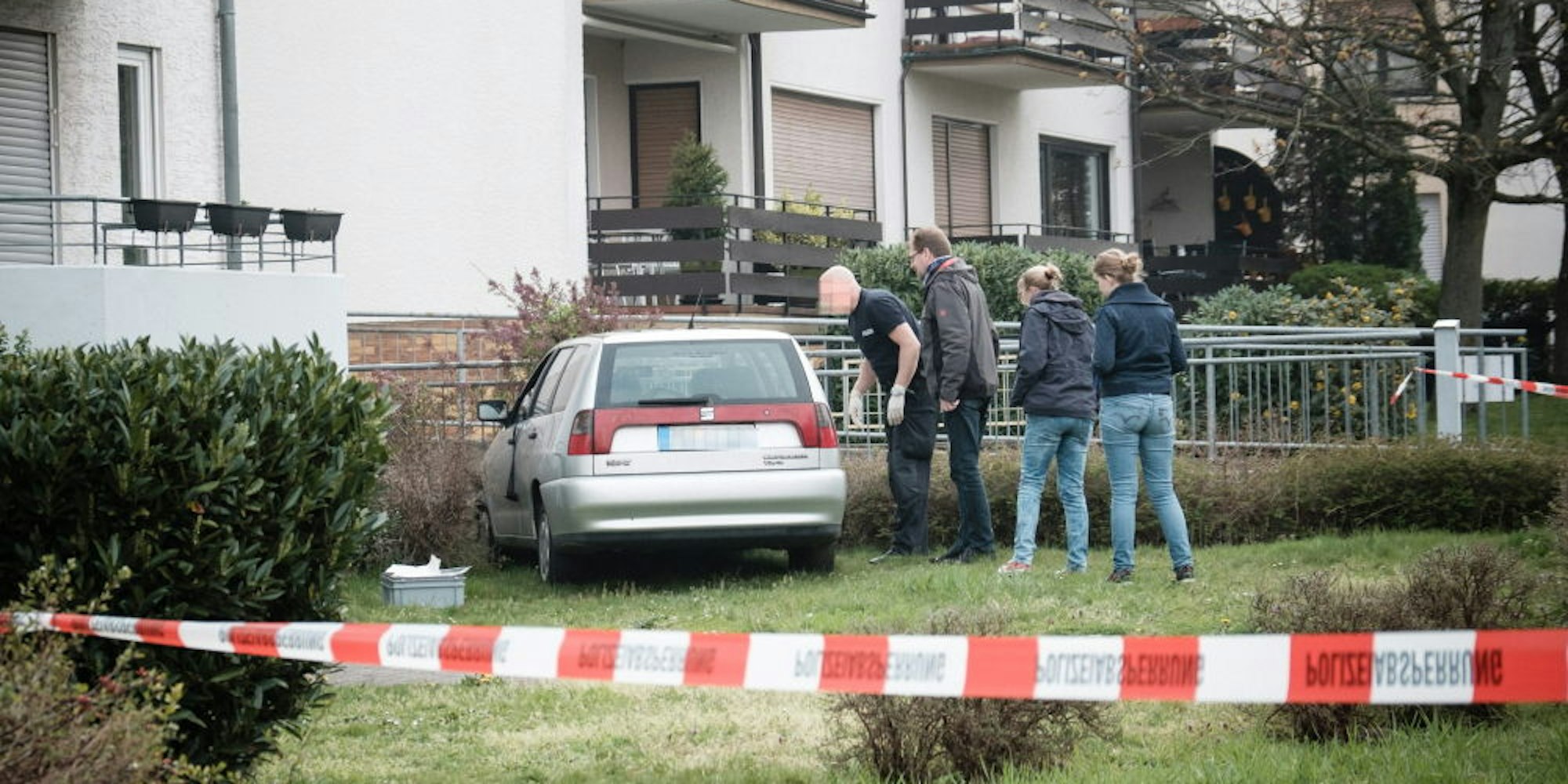 Am Morgen des 8. April 2019 sicherten Polizisten nach dem Angriff auf die 33-Jährige Spuren am Fahrzeug des Täters, mit dem er seine Ex-Freundin attackiert hatte.