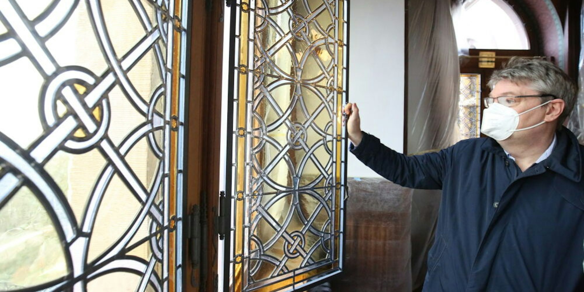 Corona-Zwangspause genutztNeue Buntglasfenster für Schloss Drachenburg