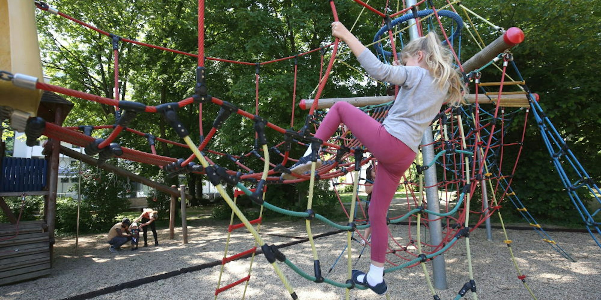 Nichts wie rauf aufs Spielgerät: Wie hier im Stadtgarten von Königswinter sind Spielplätze wieder geöffnet – unter Auflagen.