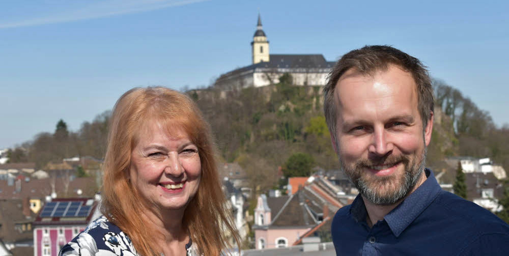 Vor dem Michaelsberg in Siegburg: Heidemarie Kristen-Apel und ihr Nachfolger Mario Kalisch.