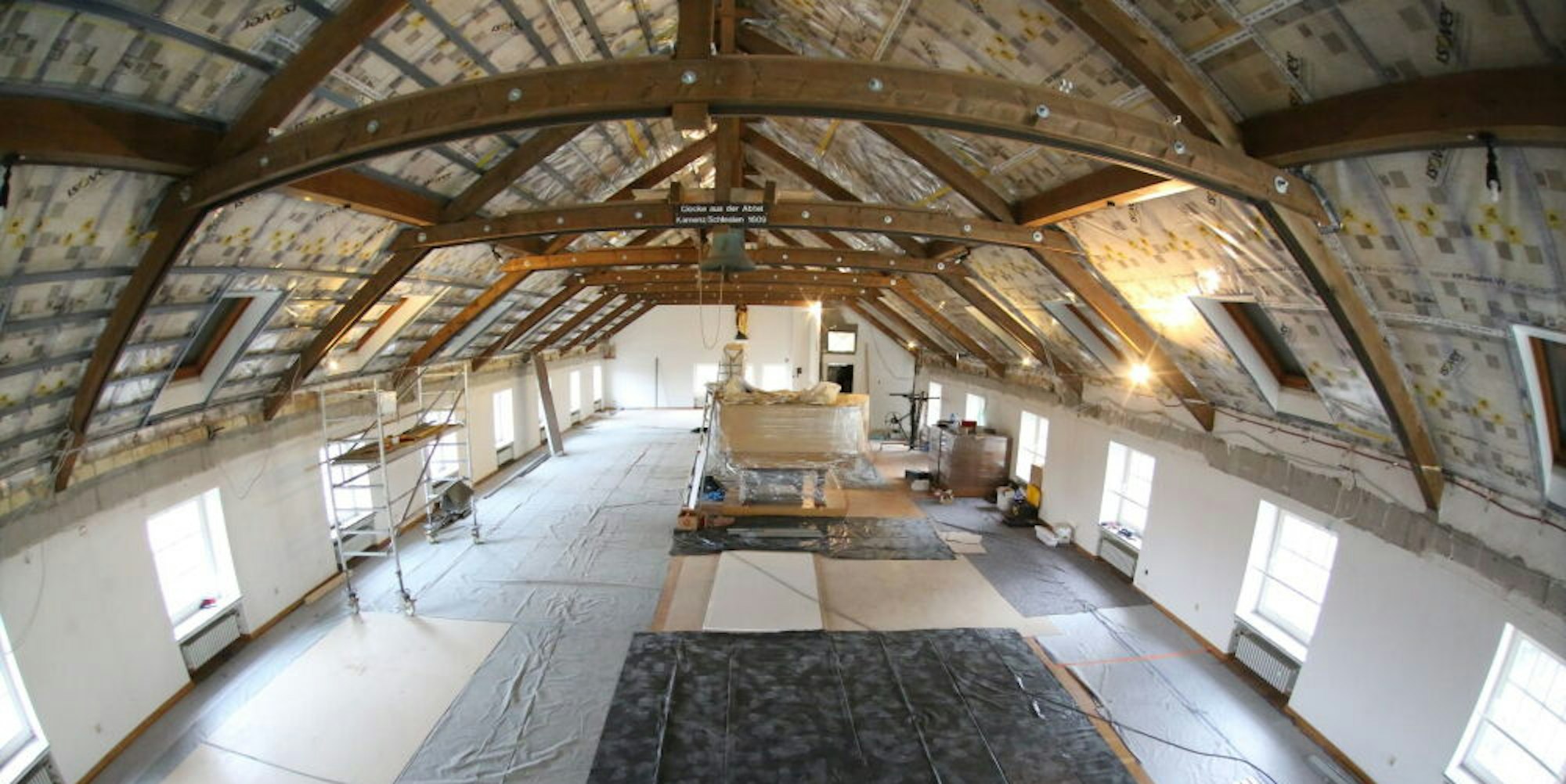 Groß und licht präsentiert sich in den Tagen des Umbaus das eigentliche Herzstück des neuen Zentrums, der rund 300 Quadratmeter umfassende Raum für die Dauerausstellung. Der ist zurzeit weitgehend leer. Bis auf das große Diorama, das Szenen der Schlesischen Kriege zeigt und das zum Schutz gut eingepackt ist, und den wertvollen Breslauer Barockschrank, der geschützt hinter dicken Planen an einer Wand steht und als „übergeordnetes Leitobjekt“ die Intention und Ziele der neuen Dauerausstellung veranschaulichen soll, wie es im Konzept heißt.