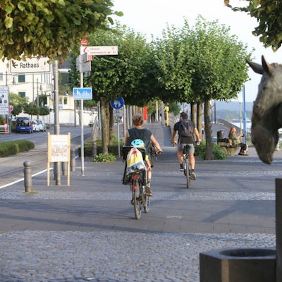 Eine Große. Er ist Teil der Euro-Velo-Route 15 („Von der Quelle des Rheins bis zur Nordsee“). Und laut einer vom Kreis betriebenen Zählstelle waren vom 1. Januar bis gestern genau 328 402 Radfahrer auf der Rheinpromenade in Königswinter registriert worden.