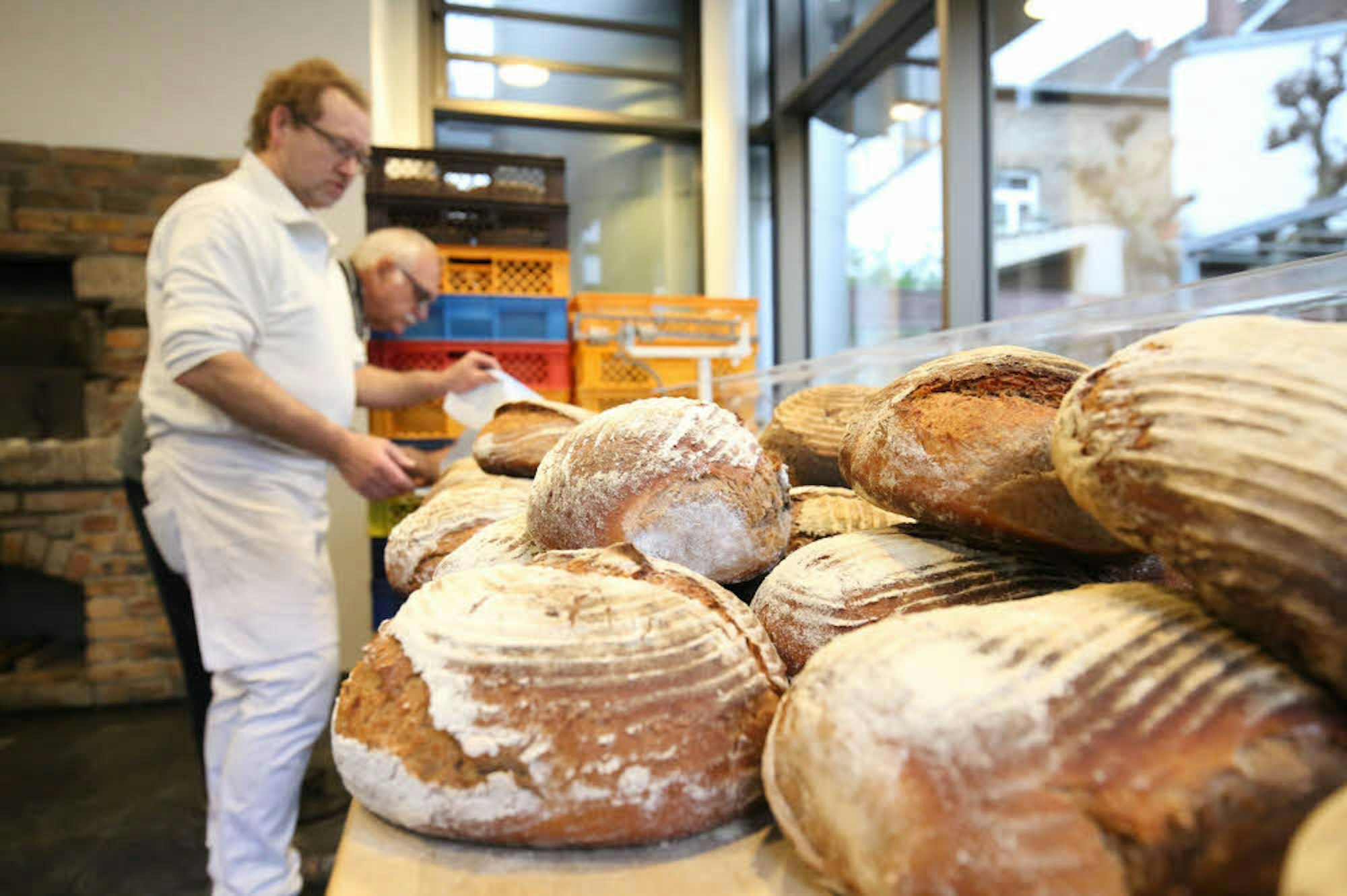 Das Ergebnis sieht nicht nur lecker aus, es schmeckt auch so: Bäcker Olaf Dabs mit den fertigen Broten.