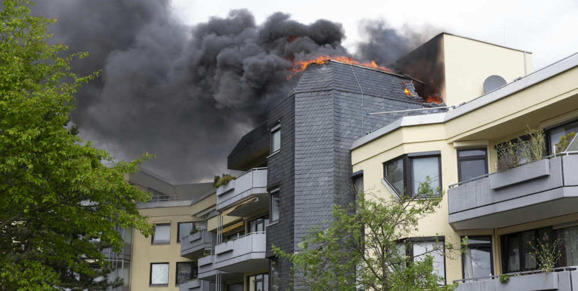 Meckenheim – Die gesamte Meckenheimer Feuerwehr rückte am Donnerstagmittag zu einem Vollbrand aus. Der Dachstuhl eines viergeschossigen Mehrfamilienhauses an der Brahmsstraße stand bereits lichterloh in Flammen, als die Wehr eintraf. Die dunklen Rauchwolken waren in weitem Umkreis zu sehen.