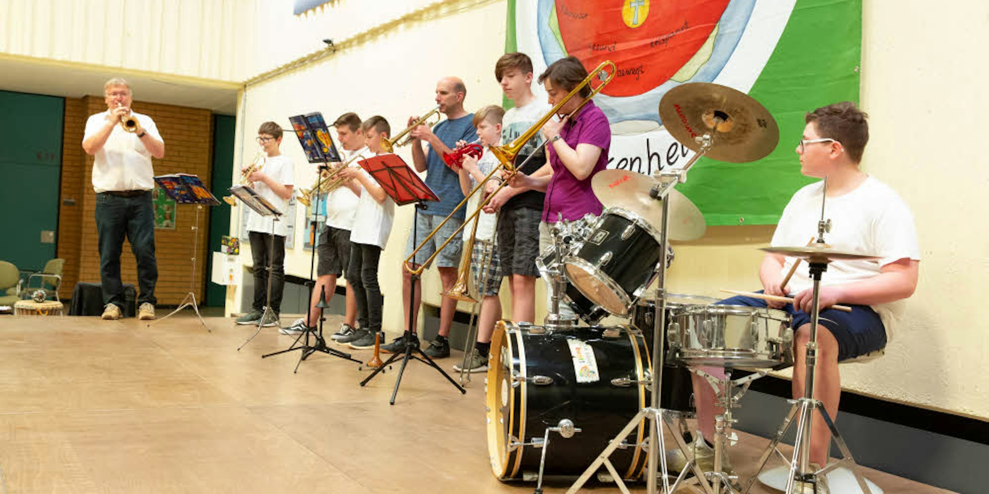 Die Band der Hauptschule animierte, ergänzt durch weitere Mitspieler, die Besucher zum Mitsingen.