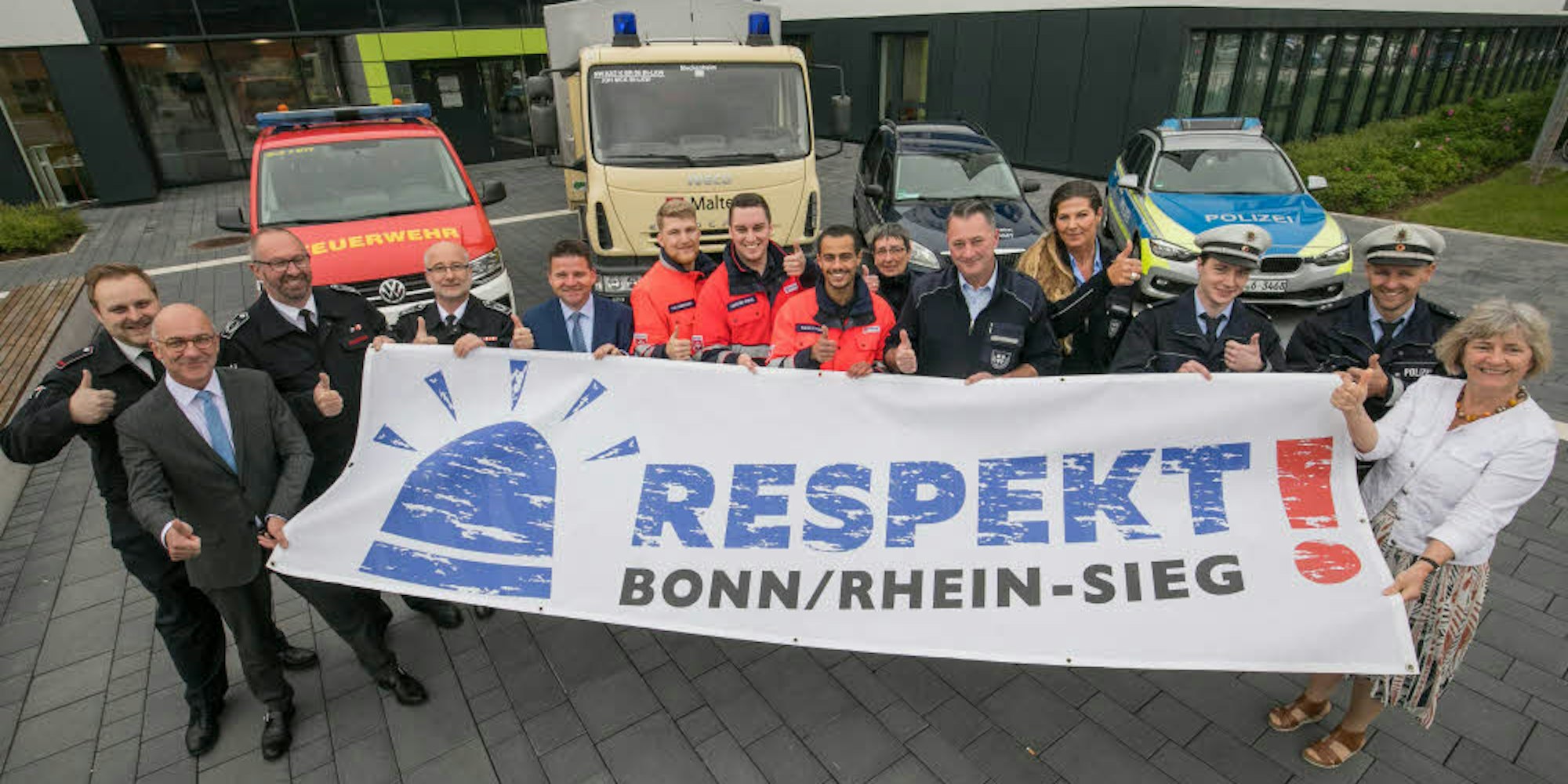 Für die Stadt Meckenheim sei es eine Selbstverständlichkeit und eine Herzensangelegenheit, die Kampagne „mit Vehemenz“ zu begleiten und zu unterstützen: „Wir alle sind auf die Hilfe von Feuerwehren, Polizei und Rettungsdiensten angewiesen.“ Gemeinsam wolle man das Thema in die öffentliche Diskussion bringen, bekräftigte die Bonner Polizeipräsidentin Ursula Brohl-Sowa. Es gelte „Respekt gegenüber den Personen zu zeigen, die „wachen, helfen und schützen“.