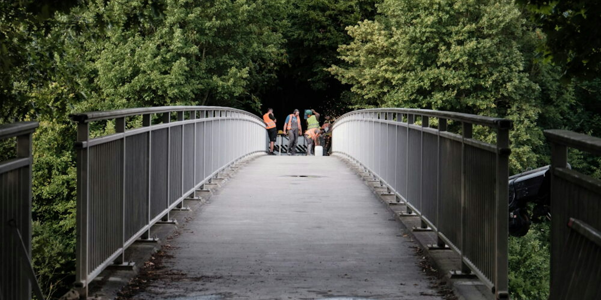 In einer nächtlichen Aktion war die alte Fußgängerbrücke abgerissen worden, das neue Bauwerk hat dieselben Maße.